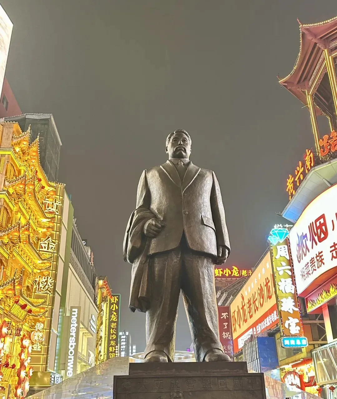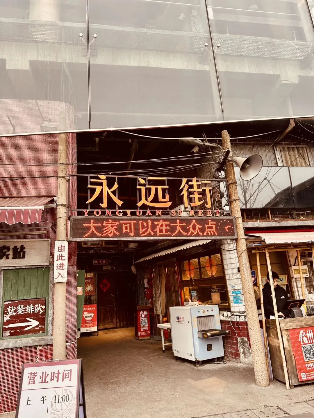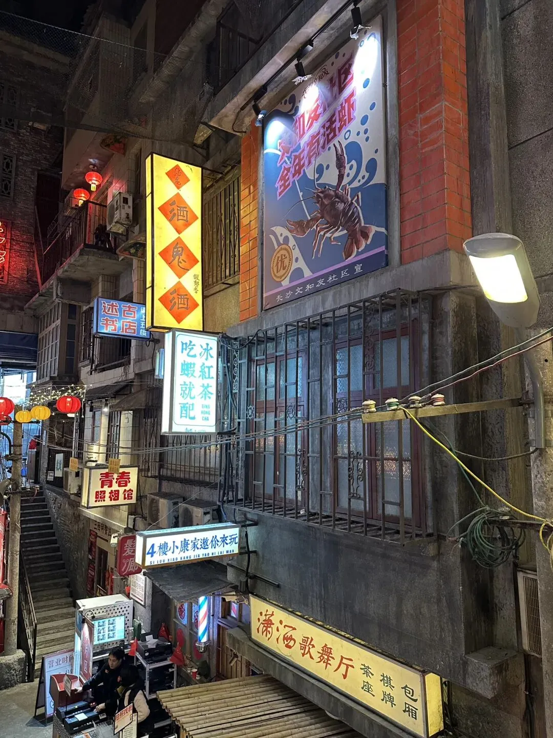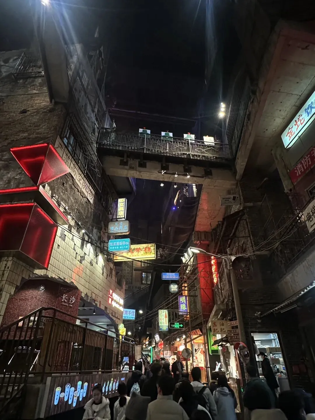 沿着江岸走了没多远,看到了马路对面的文和友,必须进去打个卡呀。里面满满的复古情节,各种小店,居然还有缆车。逛了一家书店,很有特色,里面的有历史、艺术、考古和小说,一般是原价的4-6折。吃了臭豆腐和糖油粑粑。最后出门时看到一群人围坐在炭火炉旁取暖,感觉超好!