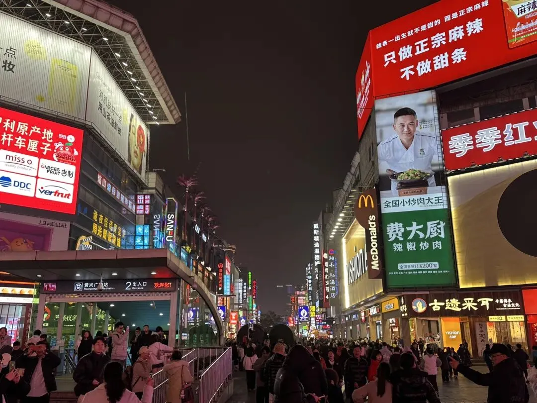 从文和友出来继续向前,就到了杜甫江阁,夜色中江阁已经亮灯,走到江畔,遥望对岸,星点灯火在浓雾中若隐若现,另有一种韵味。 往回走去了南门口,找了一家炊烟小炒黄牛肉吃晚饭,味道还可以,价格适中。 出来后沿着旁边的黄兴步行街散步,繁华热闹,还有持证的歌手在街头演唱,唱的都很不错,相当烘托整条街的气氛,长沙的夜,是热烈而喧闹的。