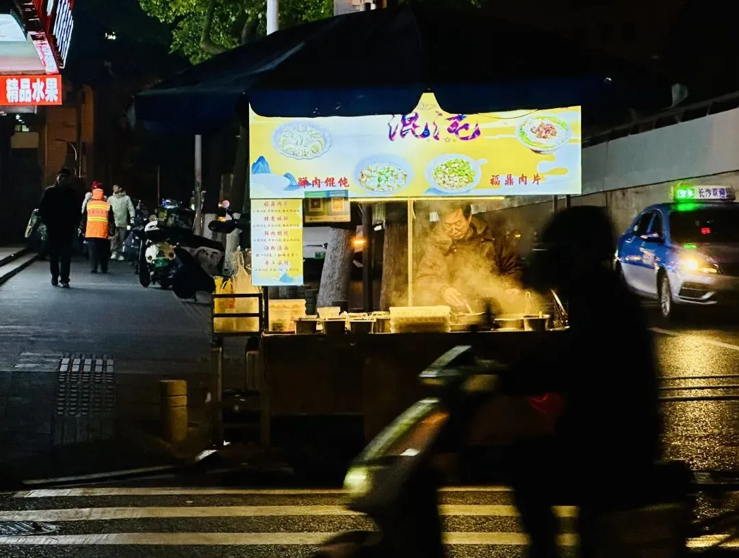 转了一圈,步行回酒店,在路上一个安静的小街口,有热气腾腾的馄饨摊抚慰着冬夜夜归人的心。
