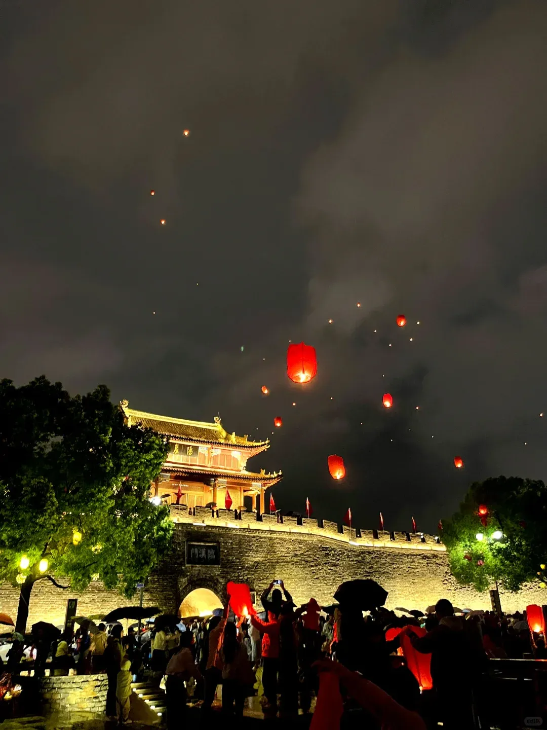 城墙灯亮了,风起了,江边的乐声在空气里打着转。夜色不浓不淡,刚好能看见轮廓。