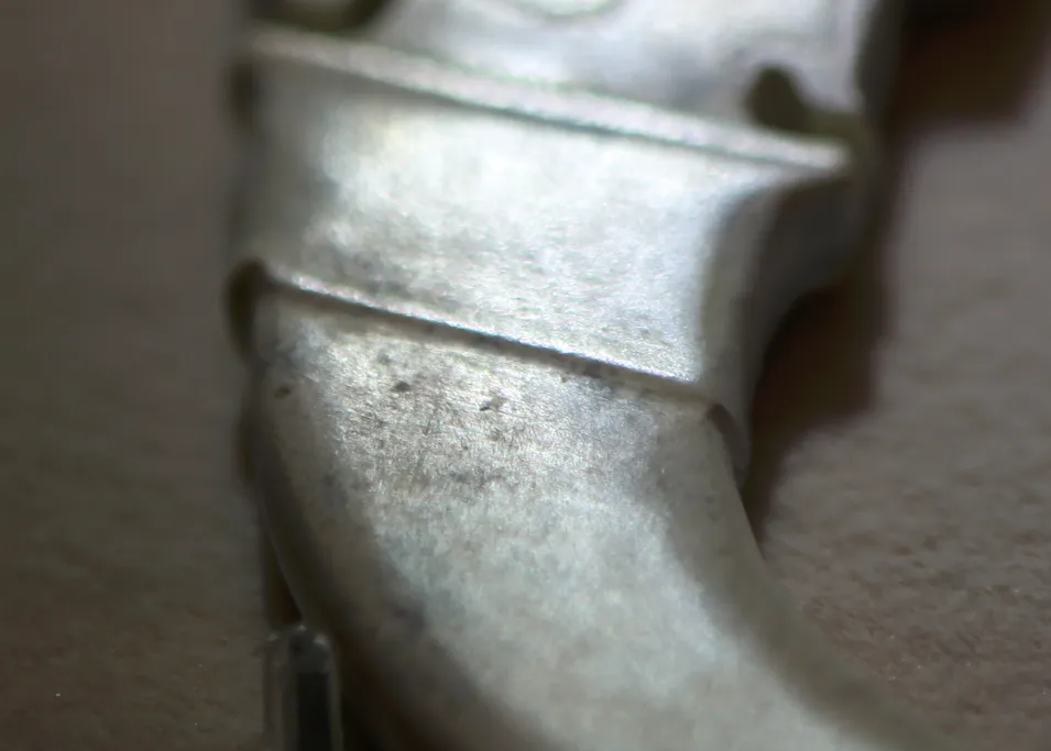 凤首顶部并非龙纹的 “角”,而是向上翘起的卷云纹凤冠,冠部以阴刻线勾勒出螺旋状纹理,这是楚式凤纹区别于中原凤纹(多为直立高冠)的关键 —— 楚凤冠部更轻盈、更具动感,常与卷云纹融合,体现楚文化的浪漫主义风格。