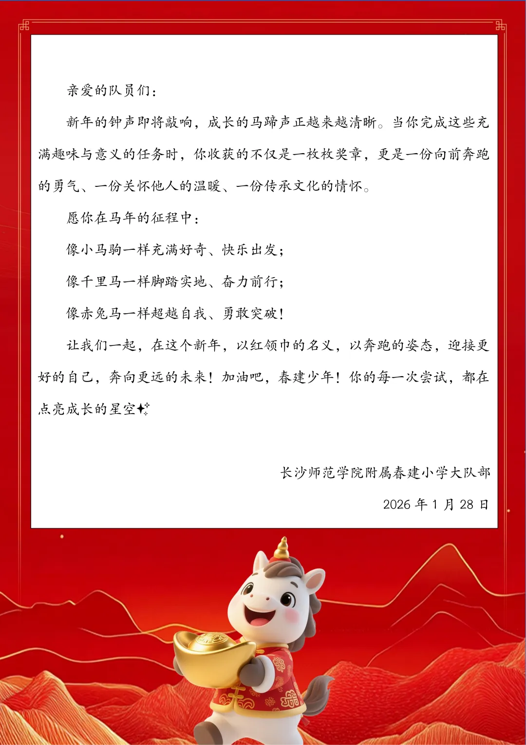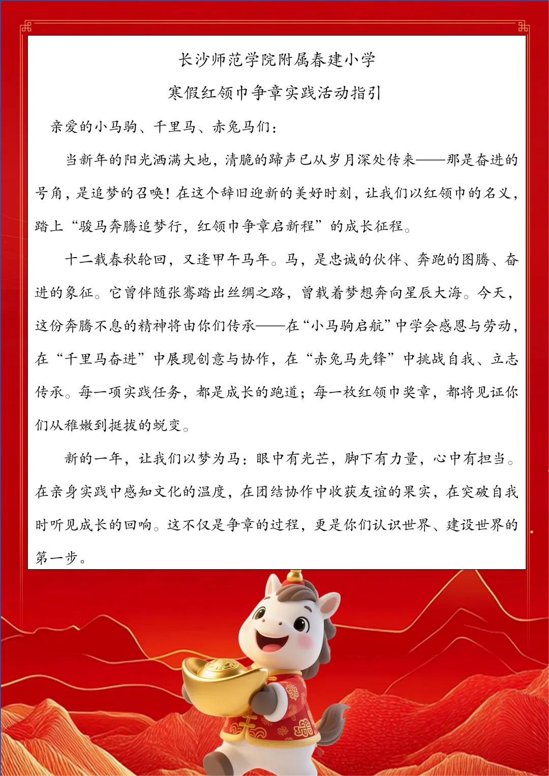 >【2026年第12期】长沙师范学院附属春建小学寒假红领巾争章实践活动指引