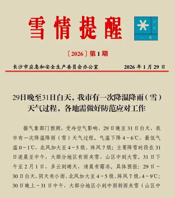 长沙雪情蓝色预警