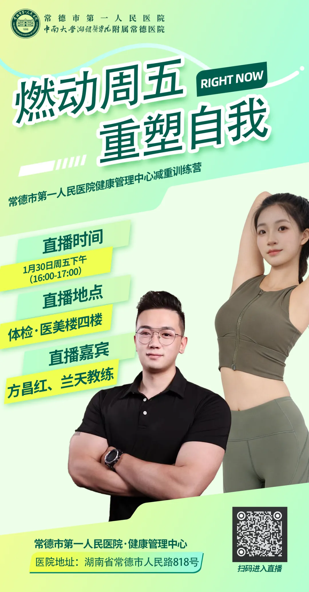 常德市第一人民医院健康管理中心减重训练营,直播时间,1月30日周五下午