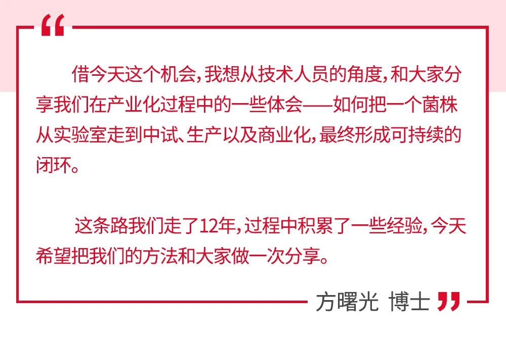 针对这些挑战,我们创业以来始终坚守"六个字":产业化、功能性。跟学术研究机构相比,从菌株开发的第一天就把"能不能产业化"(高密度培养、高抗逆性和稳定性等)放在前面;如果不能产业化,即使功能再强,我们也不会选。跟产业化同行相比,我们同样强调两点:菌株来源及基础研究是否可靠、功能验证是否扎实。我们就用这"六个字"长期约束自己,推动事情真正落地。