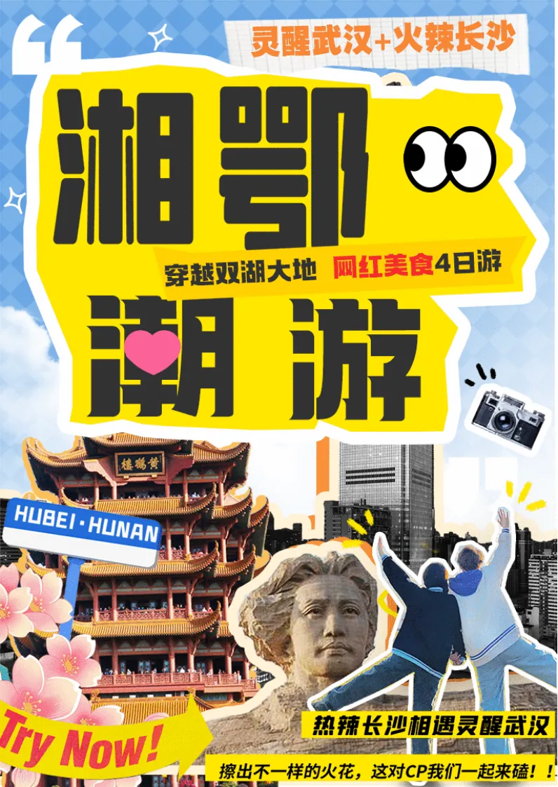 【湘鄂潮游】,邀您共赴一场关于味蕾、心灵与文化的深度悦遇。在这里,鄂湘两地的风情万种,将化作一段段难忘的记忆,镌刻在您的心田。期待您的到来,让回忆如诗,温暖悠长。