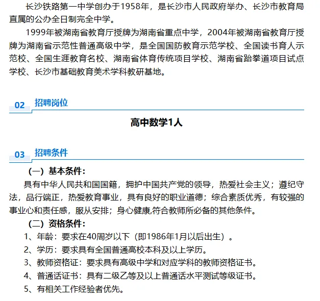 声明:本微信公众号刊载此文,无任何商业目的,纯属公益转发,目的是架起求职者和用人单位之间的桥梁,传递更多的招聘就业信息,请您找工作时候务必高度警惕各类求职陷阱。若来源标注错误或侵犯了您的合法权益,请及时与我们联系,我们将及时更正、删除或依法处理,微信号(含:商务合作):sqdzry。招考工作按照个人报名、资格审查、面试、试教、聘用等程序进行。