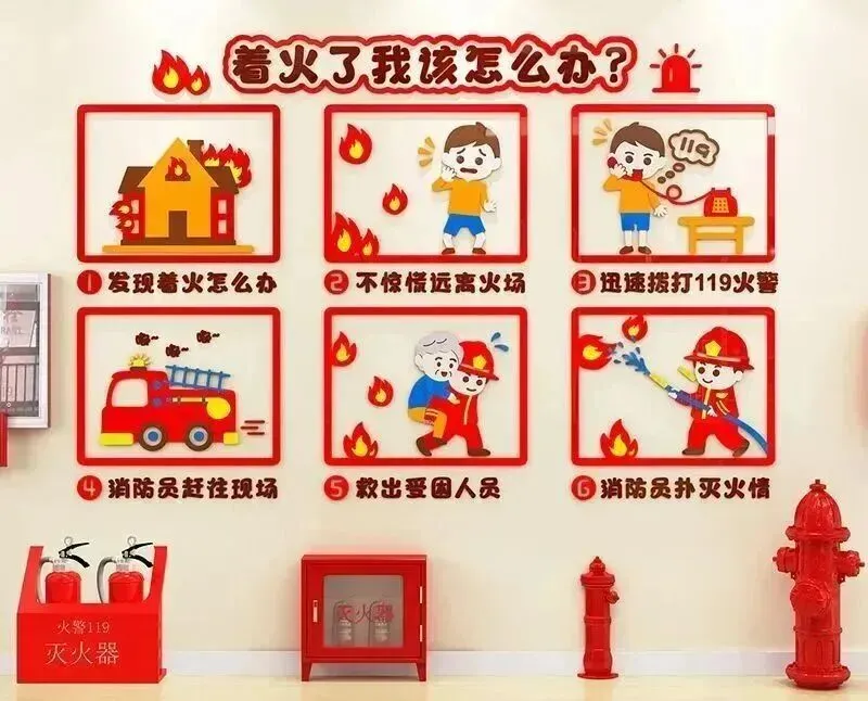 4.与孩子共同学习消防安全知识,重点教导孩子掌握正确逃生技能:如发现火情要立即拨打119,清晰告知起火地点、火势大小;逃生时用湿毛巾捂住口鼻,沿疏散通道弯腰低姿快速撤离等。