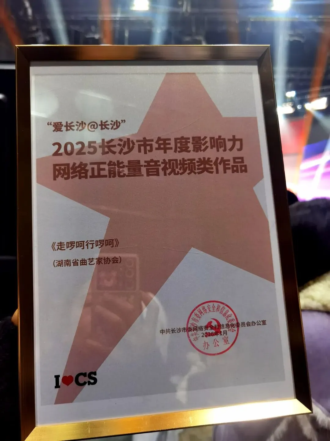 《走啰呵行啰呵》荣获2025长沙年度影响力网络正能量音视频作品《走啰呵行啰呵》以“唱响潇湘美景、传递湖湘精神”为核心主题,依托线上线下多平台联动传播,实现了传播范围的广泛覆盖与播出效果的深度渗透,成为城市文化传播与正能量传递的优质载体。在音符的跳跃中,一幅动静相宜、古今交融的潇湘画卷徐徐展开。《走啰呵行啰呵》宛如一封用旋律写就的“湖南旅行邀请函”,字里行间饱含着对这片热土的深情厚谊。它不仅是一首歌,更是一场穿越时空的旅行,带领网民饱览三湘四水的壮美与人文的璀璨。《走啰呵行啰呵》开篇便以极富网感和新潮的笔触,勾勒出畅游湖南的便捷与惬意。“高铁走一波,南北一首歌”随着高铁的飞驰,大江南北的距离被瞬间拉近。听者仿佛置身车厢,看窗外风景飞逝,心中激荡着对长沙的向往。“早登祝融顶,晚临洞庭波”清晨,我们在南岳衡山之巅迎接第一缕阳光,感受“祝融峰之高”的壮阔;傍晚,便已来到洞庭湖畔,看烟波浩渺,体会“上下天光,一碧万顷”的宁静。一早一晚,一山一水,尽显湖南地貌之丰富。“途经长沙踩一脚,麓山看枫林,黄兴路看帅哥”途经省会长沙,怎能不停留?岳麓山的红叶是季节的馈赠,而黄兴路步行街的繁华与俊男靓女则是这座“网红城市”鲜活的脉搏。而若是选择“自驾走一波”,则又有另一番风味。“浏阳忆薪火,桑植听山歌”在浏阳,我们缅怀先烈,感受红色热土的温度;在桑植,我们聆听原生态的民歌,感受土家儿女的豪爽。副歌部分,旋律悠扬,将湖南的标志性风物如数家珍般娓娓道来,构成了一幅极具辨识度的“湖南名片”。“韶山的杜鹃,张家界的山,桃花江的妹子,最呀经得看。东江湖的月,雪峰山的烟,千里湘江的碧水,看呀看得见。”从伟人故里韶山冲的杜鹃花,到张家界鬼斧神工的奇峰;从桃花江畔的灵秀美人,到东江湖上空皎洁的明月。既有“屈大夫的身影”在汨罗江畔追寻,也有“十八洞的故事”代代传颂。这不仅仅是地理坐标的罗列,更是对湖湘文化深厚底蕴的致敬。神农的百草、罗霄山的云海、沙洲村“半条被子”的温暖故事,都在歌声中复活,让人感受到这片土地上历史与现实的交相辉映。如果说主歌是对大美河山的礼赞,那么歌曲中的说唱(Rap)段落则是对现代都市活力的极致描绘。这段Rap充满了年轻、时尚的气息,将镜头精准对焦在不夜城——长沙。“长沙是个不夜城,凌晨四点路上全是人”生动刻画了这座城市“娱乐之都”的特质,灯火通明,活力四射。“奶茶小哥手摇shake像在打碟”、“坡子街的灯牌亮过月光”从一杯网红奶茶到街头璀璨的霓虹,细节之处尽显都市繁华。在这里,你可以去万家丽看天际线,也可以在国金中心顶楼“把云朵P成表情包”,“岳麓书院连着辣椒香,浏阳河泡成了紫苏桃子姜”这几句词尤为精妙,将千年学府的文脉与街头巷尾的烟火气完美融合。古老的湘江奔流不息,而新时代的长沙,正如歌词所言,正组建着属于你我的“新的密码”。这首由知名相声演员刁子(曹曙光)用方言深情演唱、曲作者廖可玉巧妙地将花鼓戏的韵味与现代流行音乐元素相结合。那句反复吟唱的“走啰呵呵行啰呵呵”,不仅是行路的节奏,更是一种昂扬向上的生活态度。《走啰呵行啰呵》唱不尽三湘四水的美景,却足以撩动你我出发的心弦。它告诉我们,湖南不仅有历史的厚重,更有当下的火热与未来的辽阔。正如歌中所唱:“大路越走越辽阔”,诚邀四海宾朋,来这画里潇湘,共谱一曲属于你我的“幸福歌”。