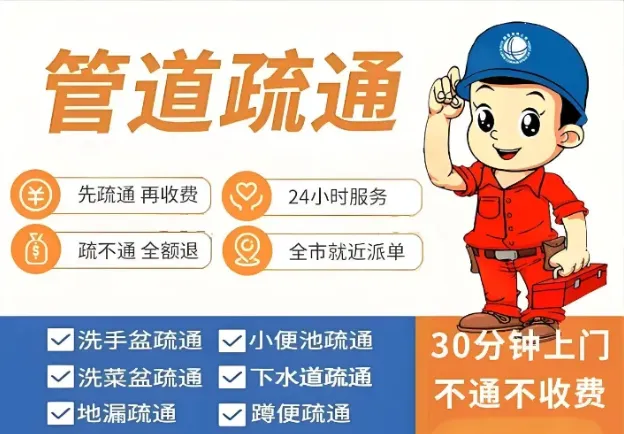 专业提供通马桶、厕所管道疏通、下水道疏通、地漏疏通、高压清洗、抽化粪池服务0110分钟上门 | 不通不收费 | 距您500米| 30元起专业提供疏通下水道、管道疏通、马桶疏通、地漏疏通、高压清洗、抽化粪池、水管维修安装等同城上门服务,师傅24小时接单,快速响应。全城区全天候师傅上门,上门快、经验足、价格透明,极速解决您的管道堵塞问题。