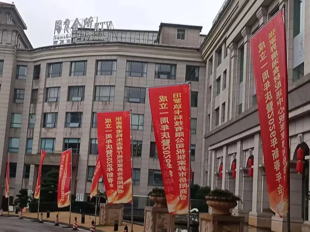 2026年1月29日,张家界市阳光酒店彩旗飘扬,一派节日喜气景象。