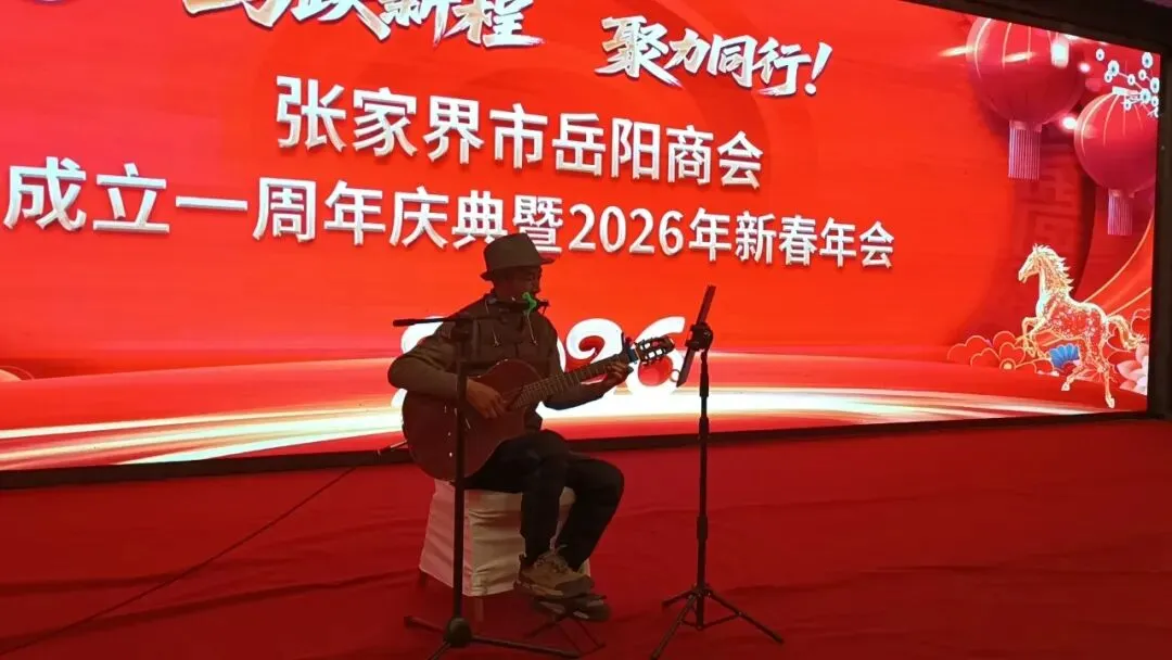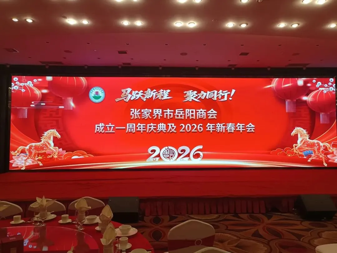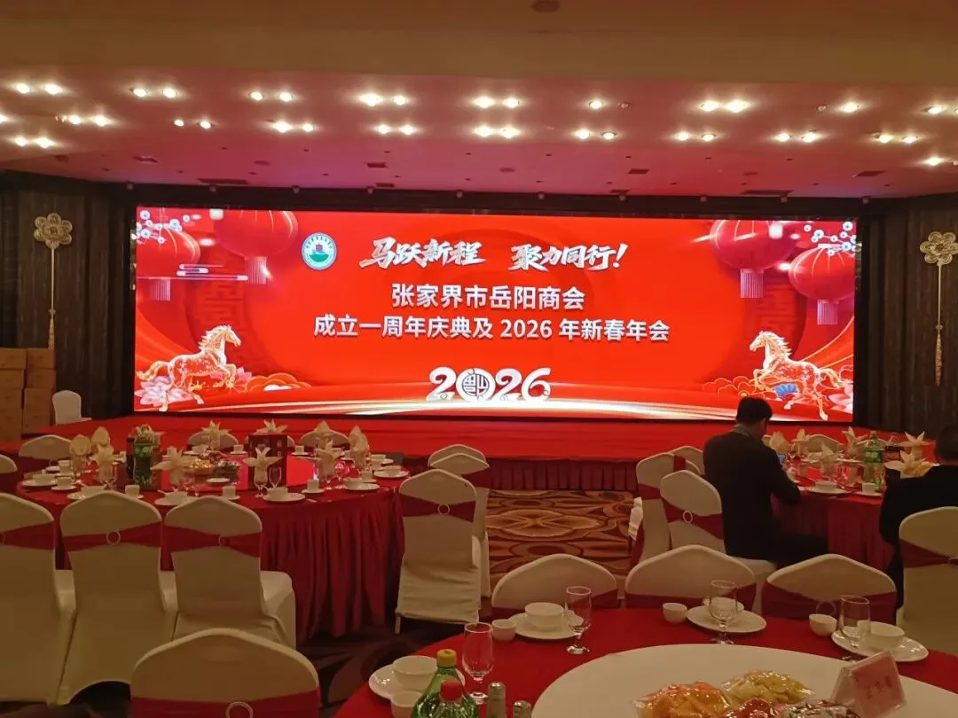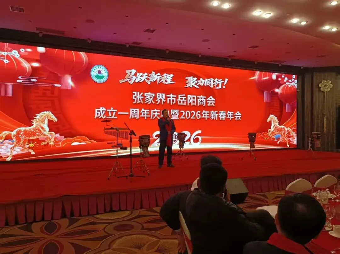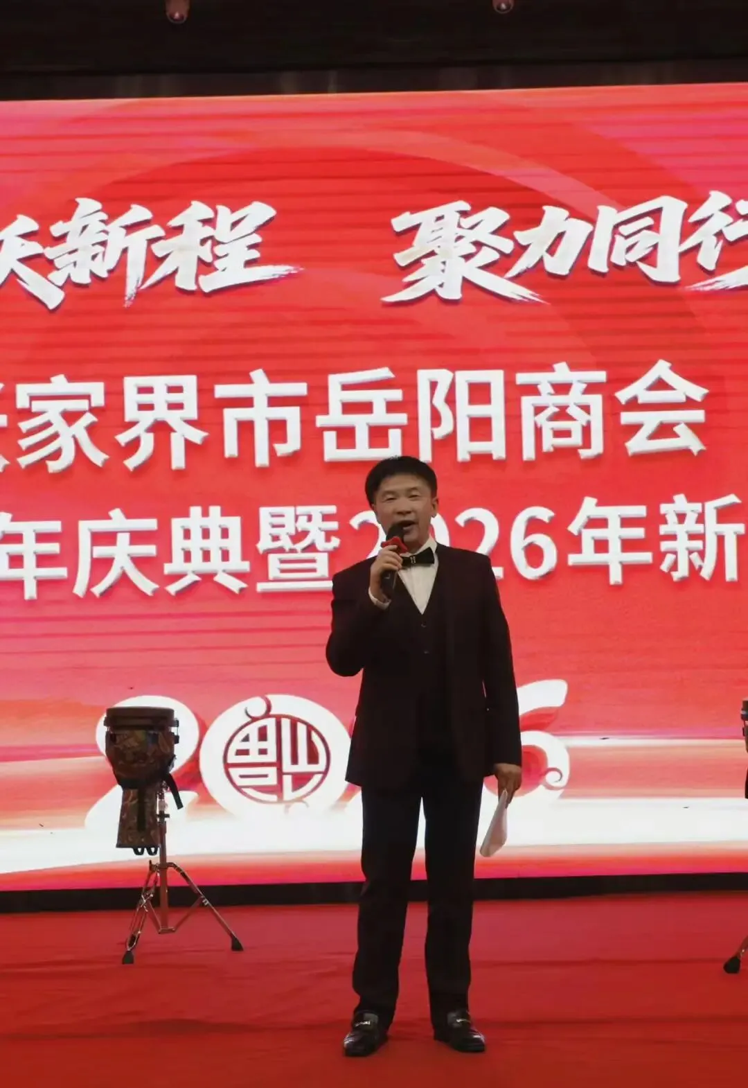 华灯初上,张家界阳光酒店一楼芙蓉宴会厅张灯结彩、高朋满座,欢声笑语。前来出席张家界市岳阳商会成立一周年庆典暨2026年迎新春年会的有:关怀支持商会工作的市、区、县有关部门领导、在张家界工作的岳阳籍老乡、企业家代表、工商联所属各异地商会、各兄弟商会、协会会长、秘书长、企业家代表以及本会会员二百多人参加。