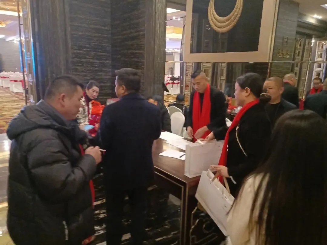 商会后勤组工作人员忙着接迎接待嘉宾,引导签到,发放礼品。