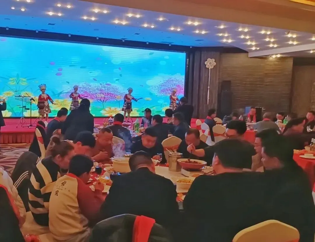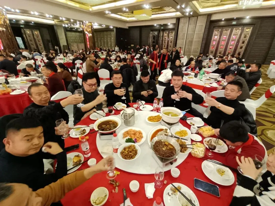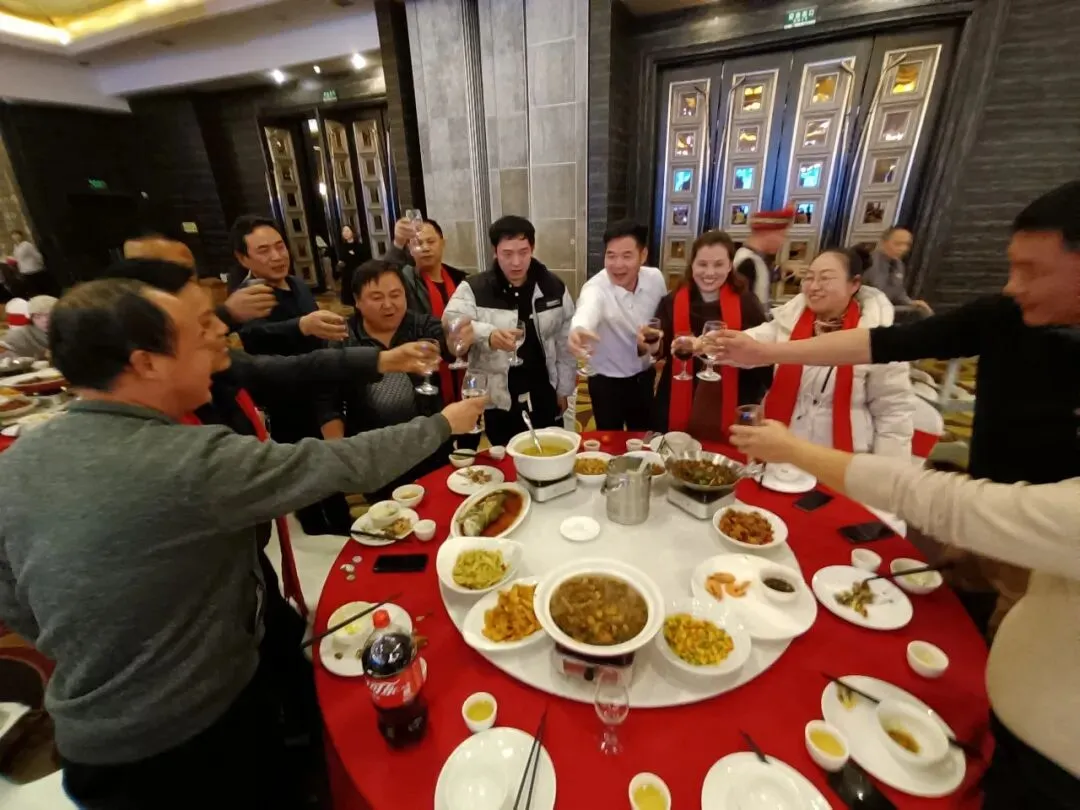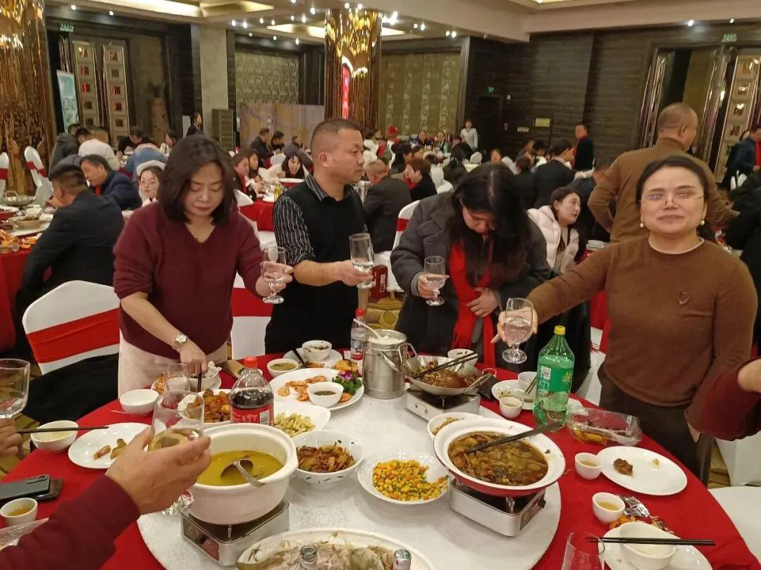 在欢声笑语中,伴随着民族歌舞的表演,在热烈的气氛中,大家共同举杯,互致祝贺,共贺新年。