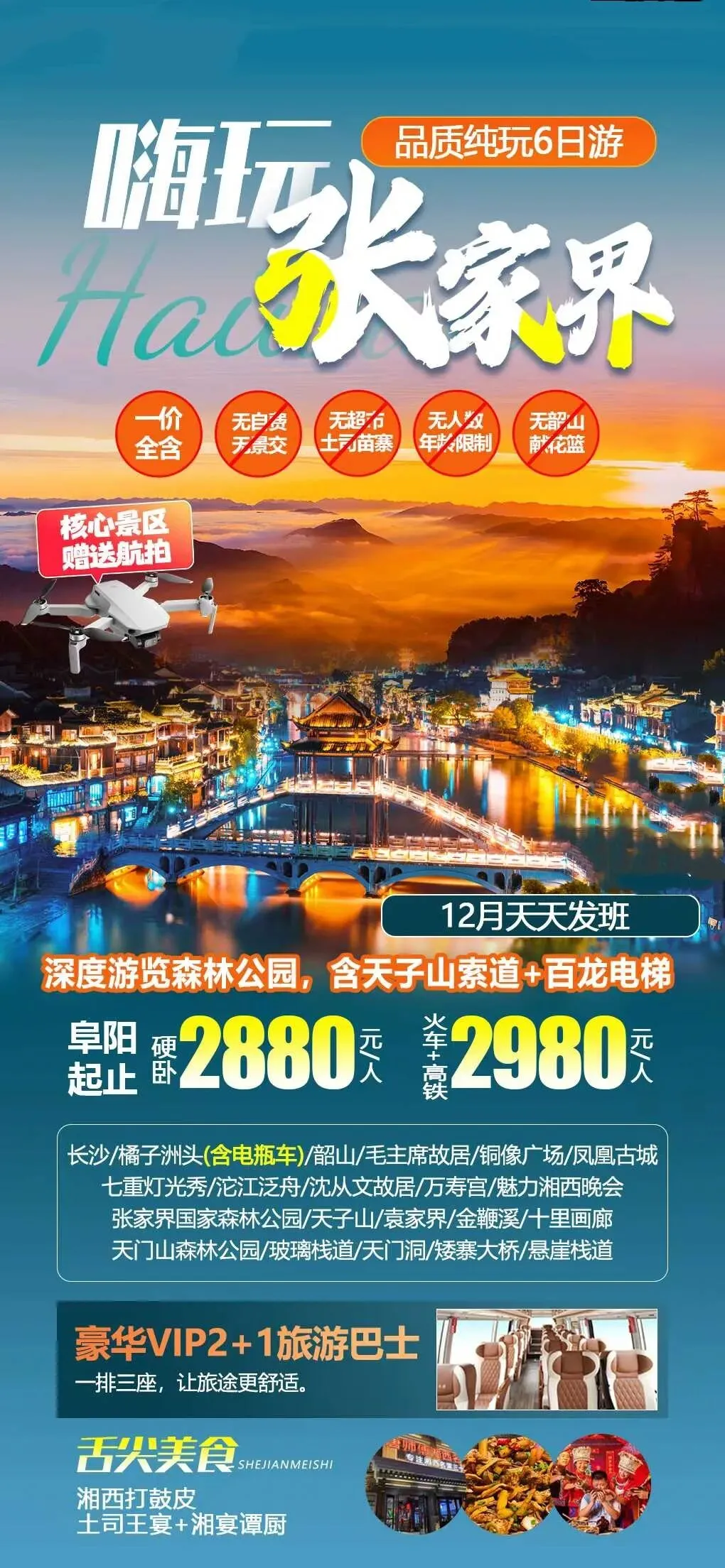 >阜阳出发【嗨玩张家界】长沙,韶山,张家界,凤凰古城,矮寨纯玩6日游2880元!
