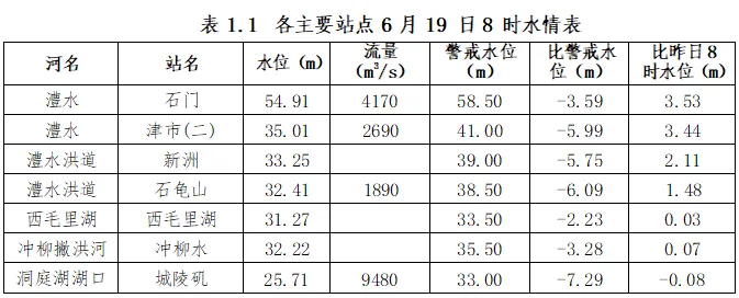 津市市6月19日8时主要站点水情统计表详见表1.1。