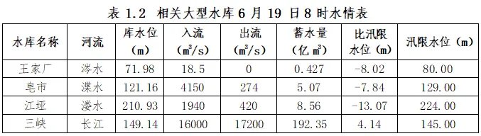 津市市相关主要大型水库6月19日8时水情表详见表1.2。