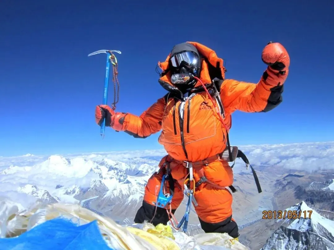 2013年5月,他站在了珠峰顶峰。