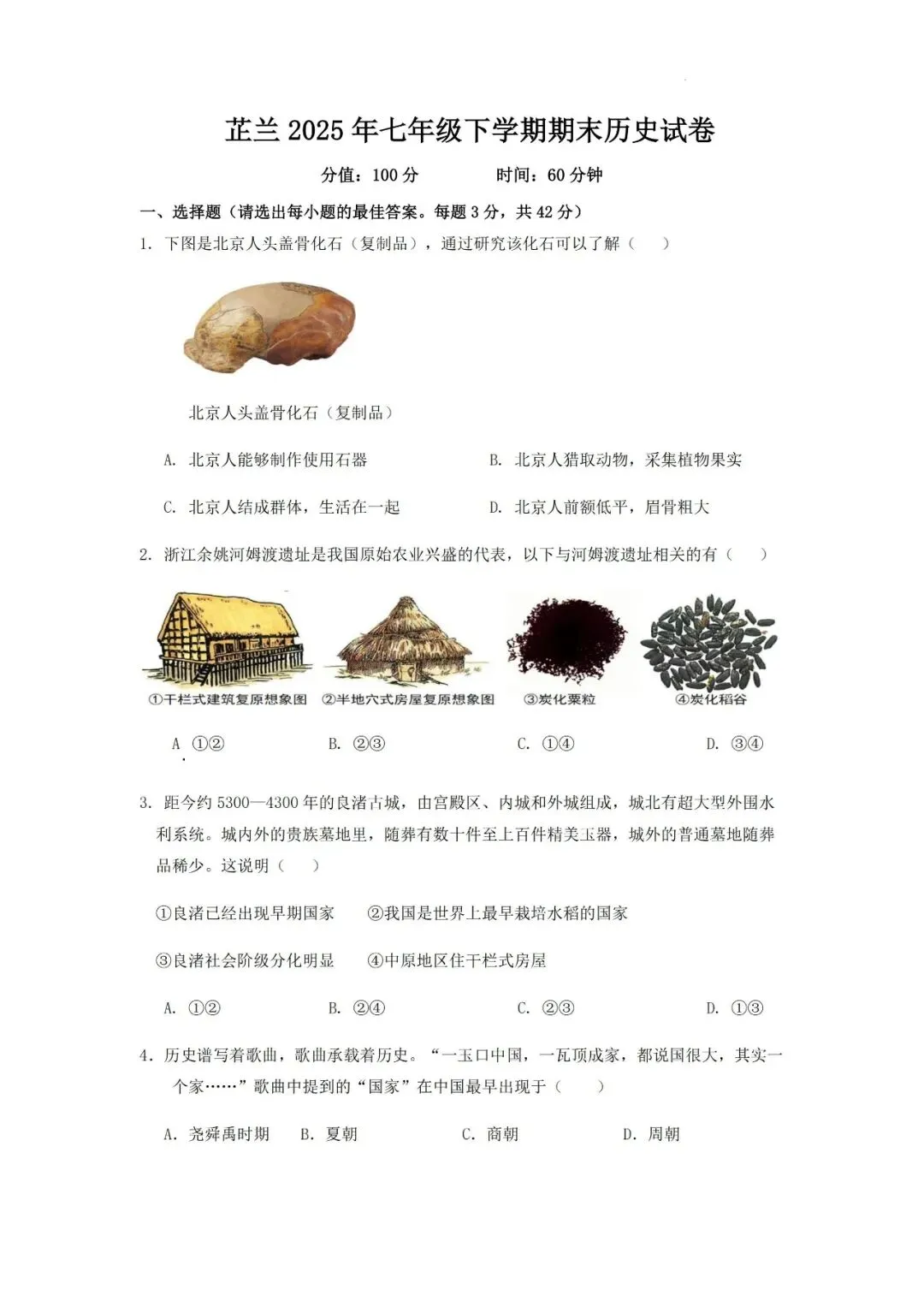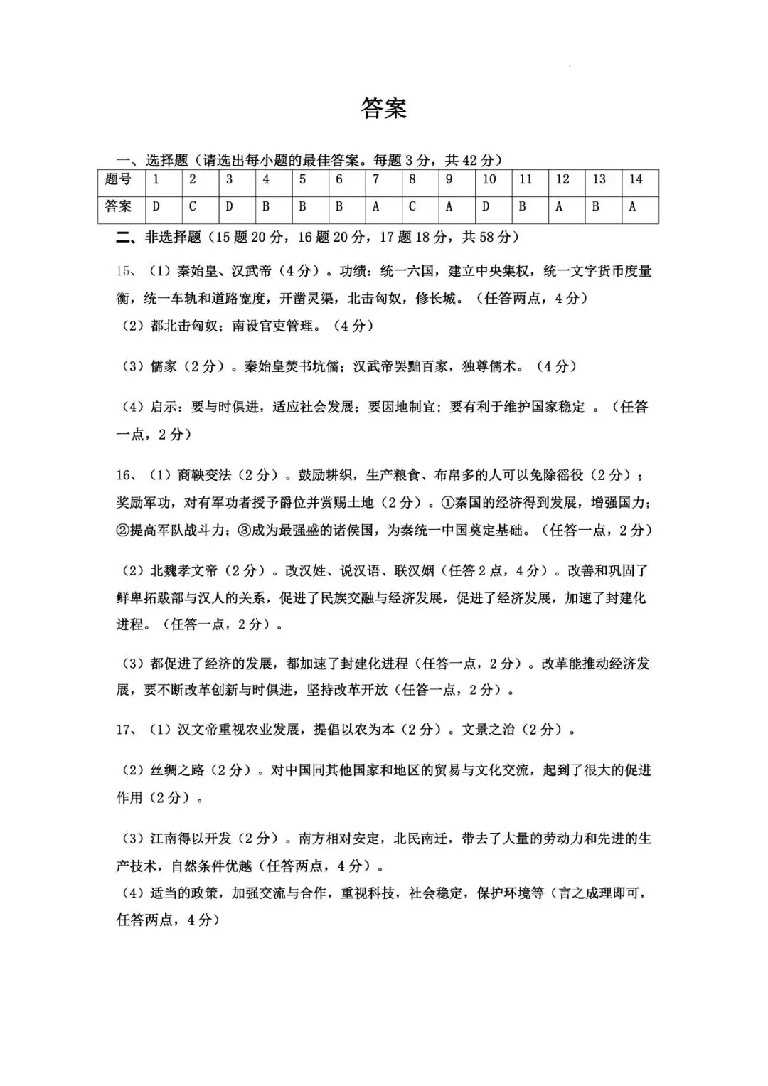 本卷全面覆盖史前文明、秦汉统一、三国两晋南北朝等课标核心内容,选择题中基础史实判断(如北京人特征、河姆渡遗址)是主要得分点;难点集中在综合应用题,如第15题需比较秦皇汉武统一政策的异同,第16题要求分析商鞅变法与北魏孝文帝改革的共同影响,对学生的历史解释与时空观念素养提出较高挑战。