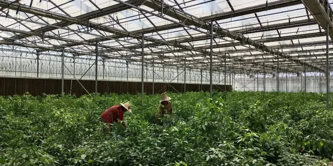 ▲ 村民在宇田农业合作社大棚内采摘辣椒(剑裘 摄)
