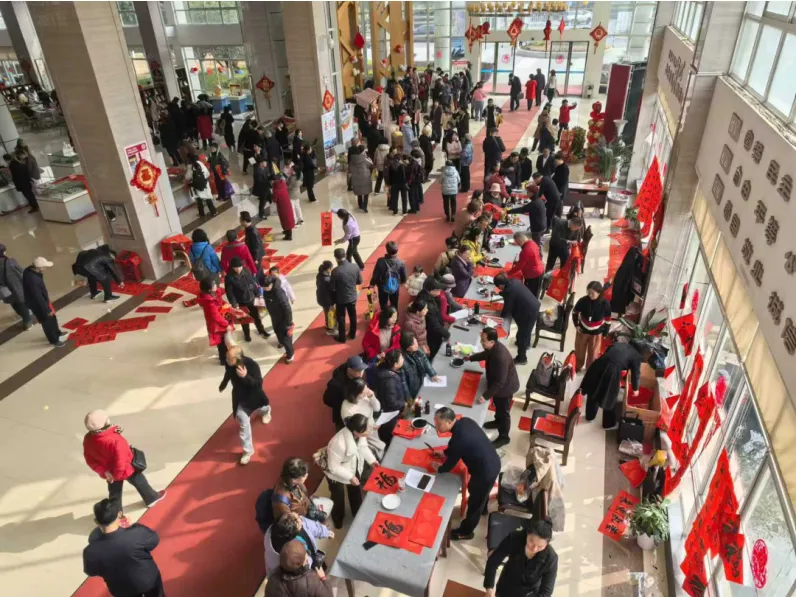 “笔墨传情·福暖万家”活动区人头攒动,书法爱好者们挥毫泼墨,一幅幅饱含祝福的春联、一个个苍劲有力的“福”字跃然纸上,老同志们手持春联福字,脸上洋溢着幸福的笑容,将新春的美好期许带回家中。