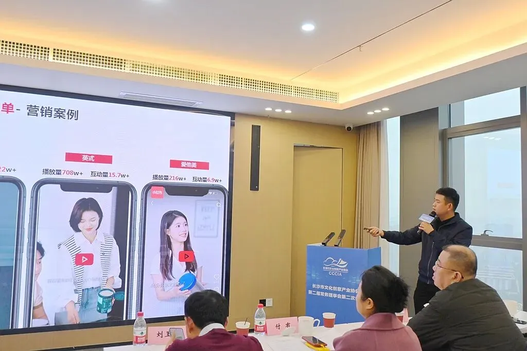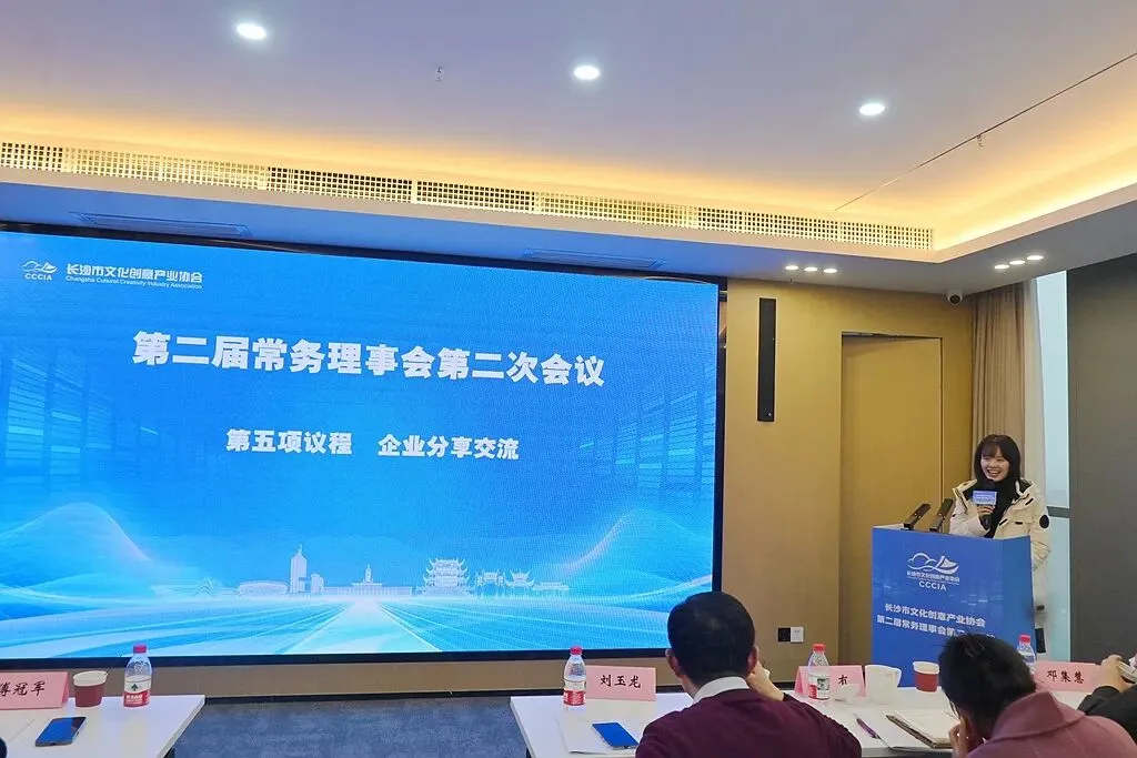 在企业分享环节,湖南创研科技股份有限公司就全链路AI营销解决方案、长沙丁丁文化传媒有限公司就短视频IP孵化及微短剧爆款打造经验、湖南聚美源景区投资运营有限公司就景区文旅商综合体等项目运营、湖南林呦鹿鸣文化传媒有限公司就影视后期制作、长沙银行股份有限公司文创支行就小微企业金融支持等方面作了交流分享。