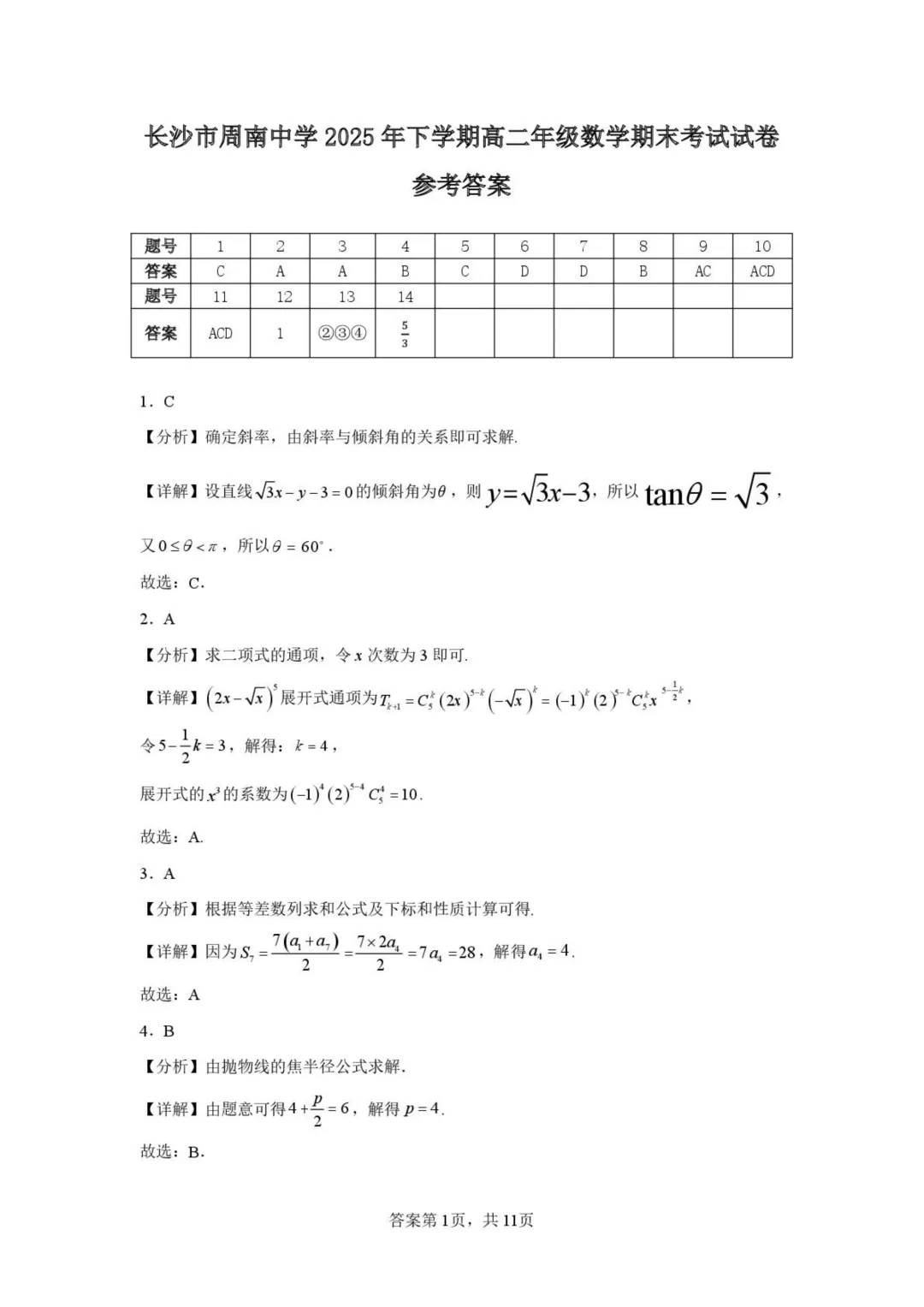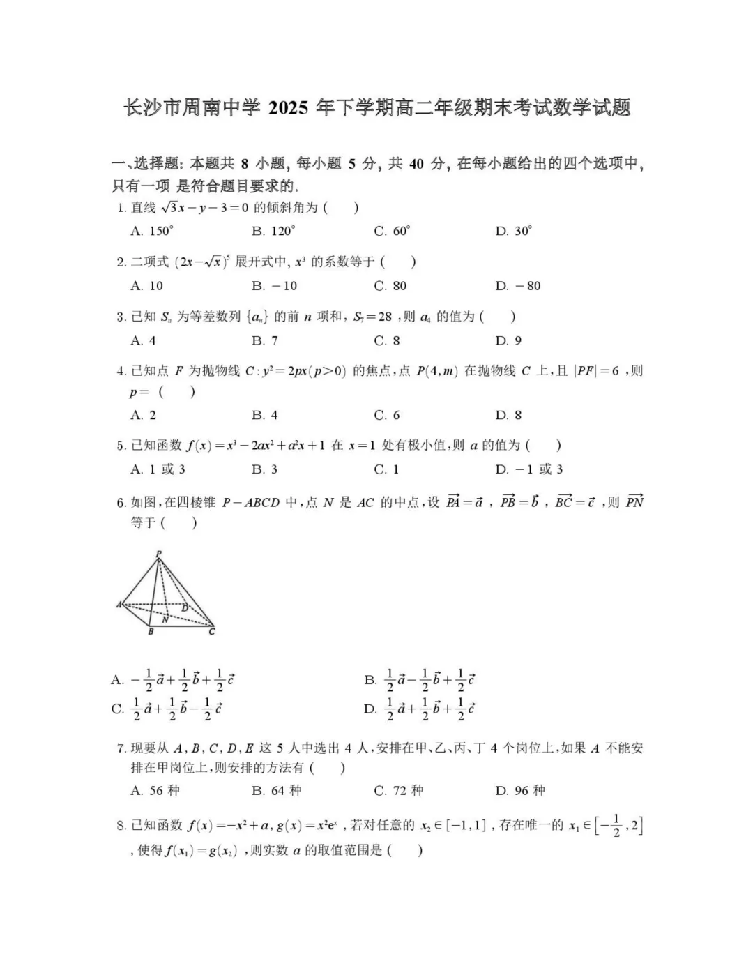 作者寄语:长沙周南中学2025-2026学年高二上学期期末数学试卷+答案,7天有效领取,手慢无!!!