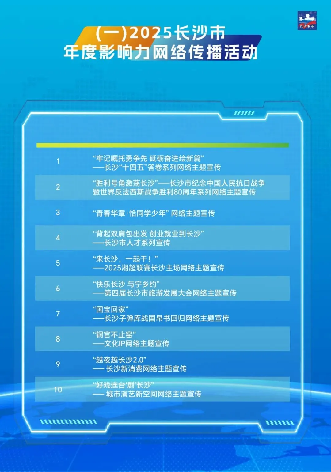 本次活动由中共湖南省委网信办指导,中共长沙市委宣传部、中共长沙市委组织部、中共长沙市委网信办主办,长沙市新媒体协会、长沙市网络主播协会协办。活动集中展示2025年长沙网络文化和网络文明建设成果,凝聚起向上向善的强大正能量,聚合城市文明之光、向善之美、奋进之志,推动新时代网络文明建设高质量发展。