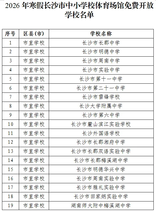 2026年寒假长沙市中小学校