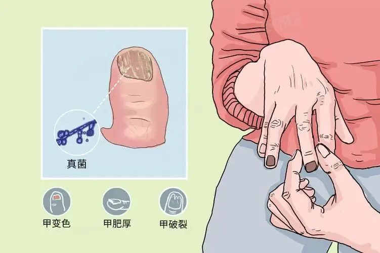 - • 近端甲下型:指甲根部突然变灰、变厚,甚至跟肉分离——免疫力差的人最容易中招,比如长期吃激素的人;