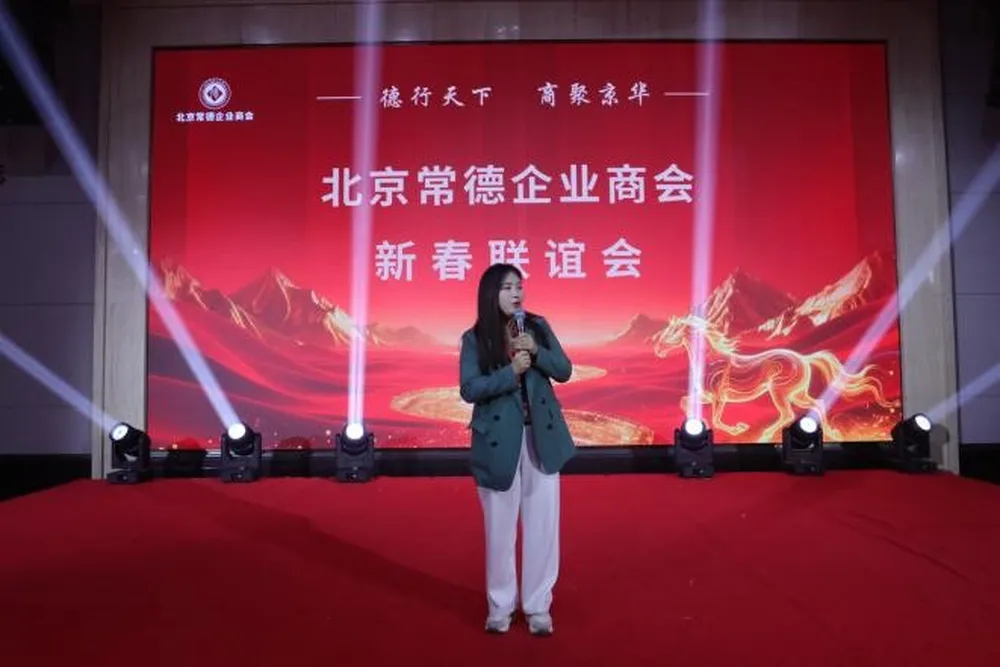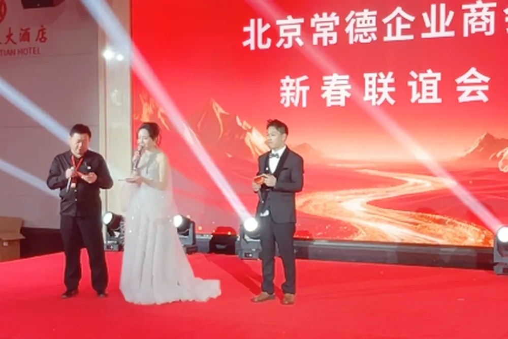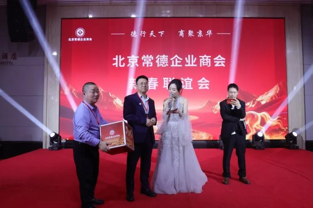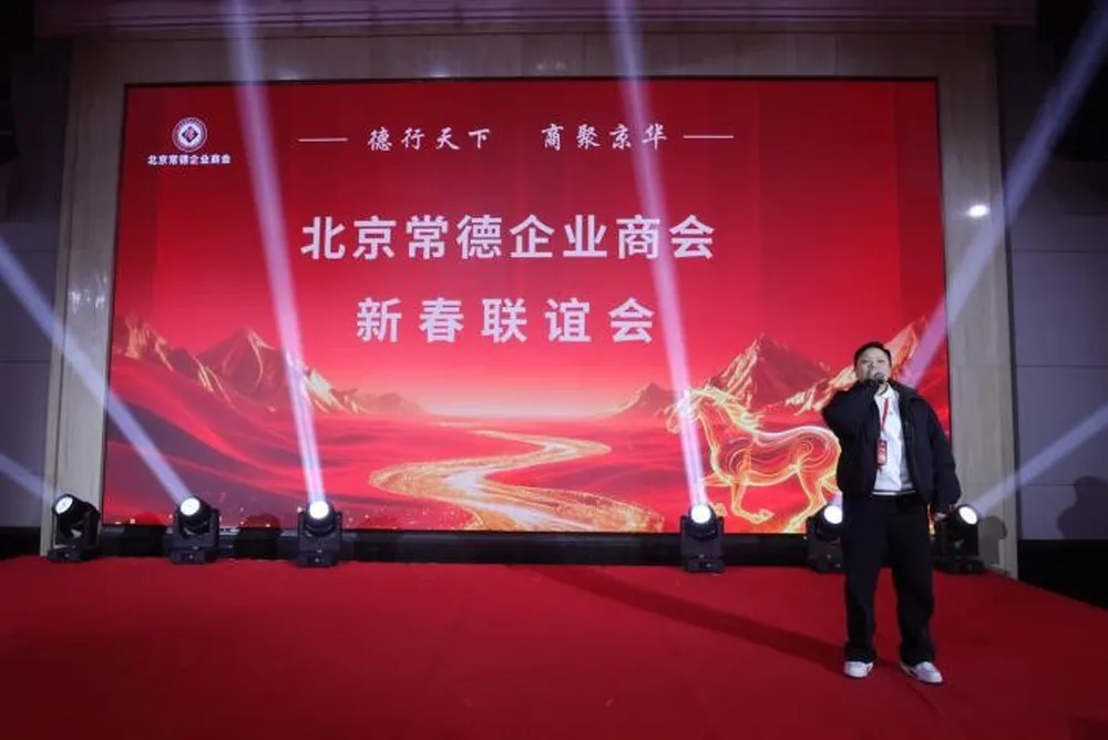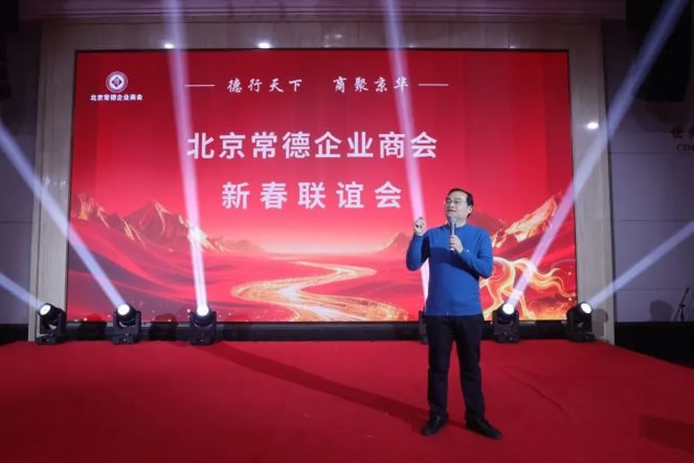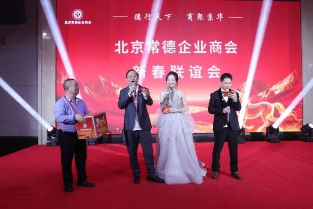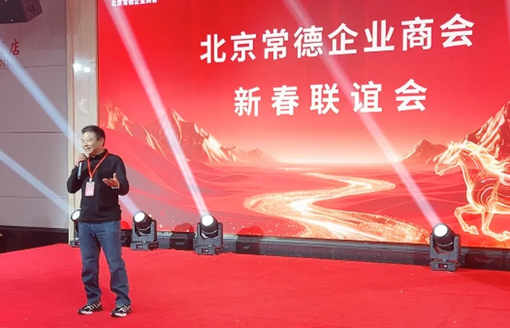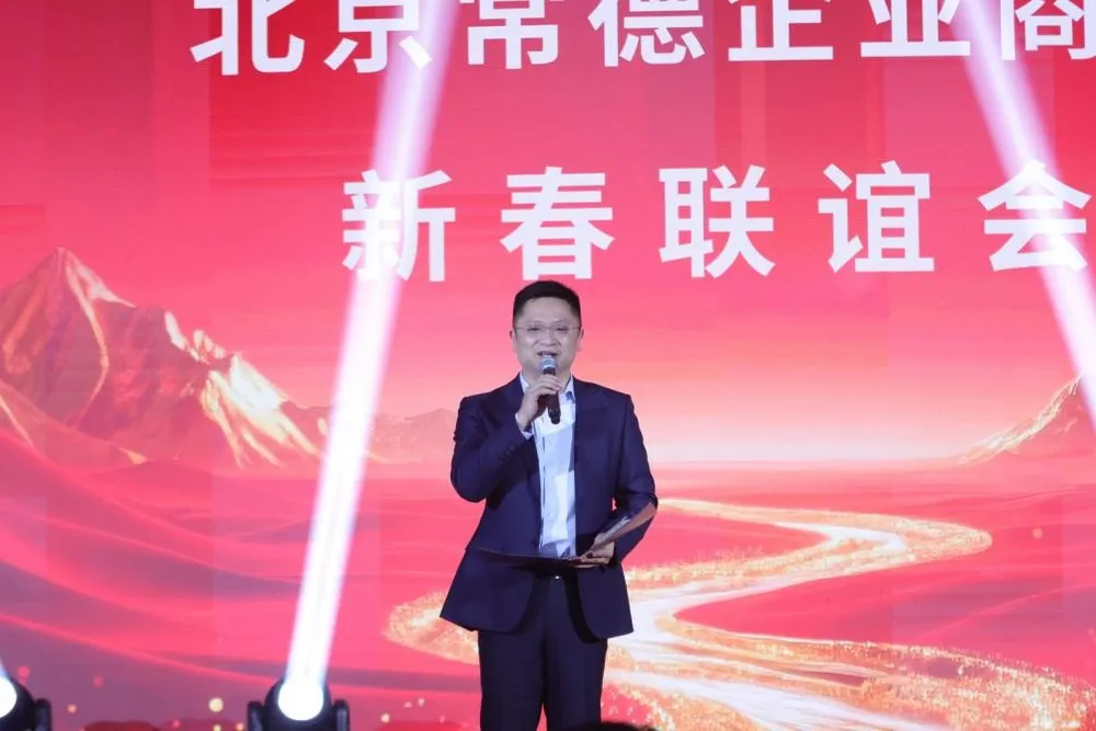 随后,常德市政府驻北京联络处主任贺俊登台致辞。他代表联络处向各位乡贤、商界精英及现场来宾致以诚挚的新春问候,向长期关心支持家乡发展的各界朋友表示衷心感谢。贺俊主任介绍了常德近年来取得的显著发展成就,高度肯定了在京常德籍人士的拼搏精神,尤其感谢在倪正东会长带领下,众多企业家带着先进理念与丰厚资源返乡投资、反哺家乡。他提出四点建议与大家共勉:一是锚定信心、趁势而上,将个人事业发展融入国家战略与家乡建设大局;二是创新改革、科技赋能;三是同心协力、抱团发展;四是心系桑梓、反哺家乡。贺俊主任表示,常德市政府驻北京联络处将始终是在京乡贤的坚强后盾,未来将一如既往提供优质服务,做好联络协调工作,让大家在首都创业发展更安心、更舒心,并向现场嘉宾致以新春祝福。
