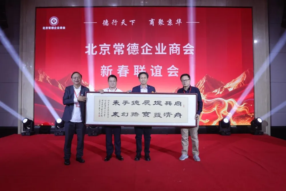 日前,北京常德企业商会第三届会员大会第二次会议暨新春联谊会在北京湖南企业商会理事单位世纪华天大酒店隆重举行。在新春联谊会上,倪正东会长发表新春致辞,分享了2025年的忙碌与收获;湖南省政府驻北京办事处党组成员、副主任杨兴文,常德市政府驻北京联络处主任贺俊,中国工程院院士苏学斌出席致辞或讲话,对商会成绩表示祝贺,对未来工作提出期望。李运之、贺福初、钟玉祥等常德籍领导湘贤出席同贺!北京湖南企业商会监事长唐金龙、副监事长姚经建,副会长李轩、刘志波,理事陈泽、张瑛、郭明、李峰、李永勇,以及何国凯、周亮等应邀与常德商会主要负责人及会员代表和各界嘉宾、各兄弟商协会代表等齐聚一堂,共襄盛举。随后,倪正东会长带领会长办公会成员祝酒致辞!现场,北京市建筑垃圾土方砂石协会会长刘金红代表协会赠送了著名书法家戴玉春的书法作品。晚会节目精彩纷呈,湘情浓厚。北京湖南企业商会志工委组织协助全程直播。在此前召开的会员大会上,常德商会秘书长谢泽敏作《理事会工作报告》,轮值会长刘业纯作《财务工作报告》,监事长孙松柏作《监事会工作报告》,审议通过了修订后的《北京常德企业商会章程》及增选人员名单。商会会长办公会成员执行会长颜勇、张天一,常务副会长曾志强、熊凌志、袁秀忠、林刚、兰佳依次上台述职,倪正东会长发表总结讲话,并为新任常务副会长、副会长、理事单位等授牌。欢迎关注!北京常德企业商会举行新春联谊会新春联谊会精彩启幕