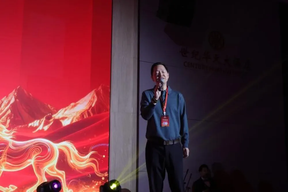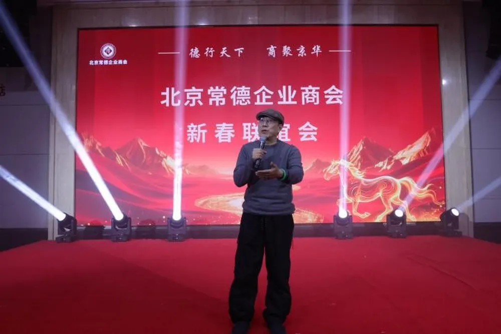 会长倪正东发表新春致辞,他分享了自己 2025 年的忙碌与收获:全年飞行 108 次,足迹遍布12个国家、50多个城市,总航程达20万公里,其旗下清科集团有6家直投的企业成功上市,间接投资的企业也有18家顺利登陆资本市场。他饱含深情地说,在奔忙的旅程中,最魂牵梦绕的还是自己的家乡和家人。对于商会发展,他表示,2025年在轮值会长刘业纯的带领及全体成员的共同努力下,商会会员从129人增至162人,新增33人,会员质量稳步提升,商会凝聚力与影响力持续增强。借此年会契机,倪正东会长代表商会向各位领导、家乡乡友,向支持北京常德企业商会发展的北京湖南企业商会、各兄弟商会及各界友人致以崇高敬意与诚挚感谢。他强调,北京常德企业商会是在京常德籍企业家与乡友的共同家园,大家在工作、生活与精神层面紧密相连。值此新春佳节来临之际,他向所有乡友、会员送上节日的问候与美好的祝福。