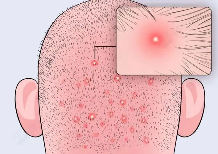 皮肤是“警报器”!毛囊炎别硬扛:红肿化脓(如后脑勺疙瘩严重到头皮肿疼)→早发现早处理!疙瘩变多/痛,赶紧找皮肤科医生,药膏或口服药很快恢复。