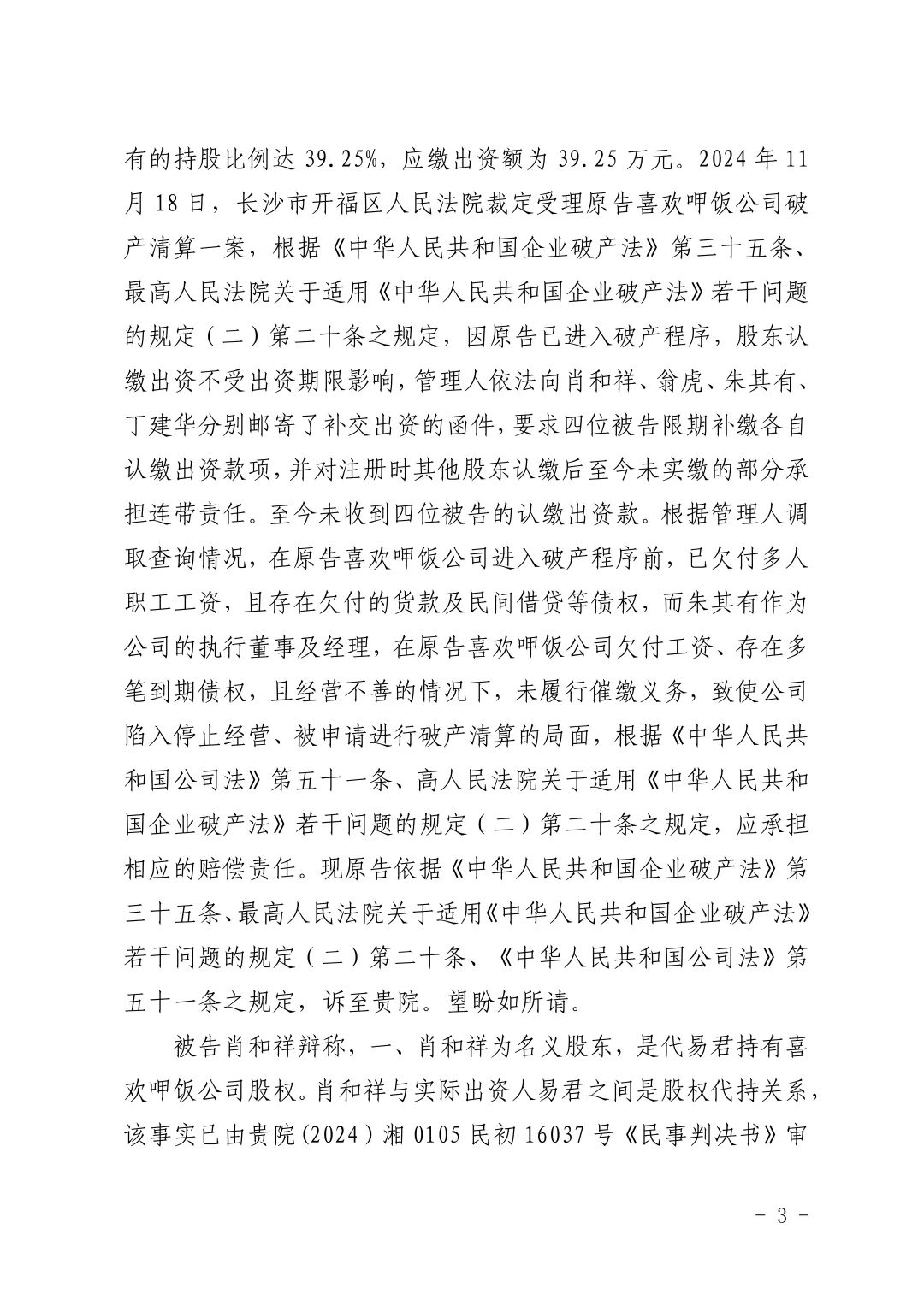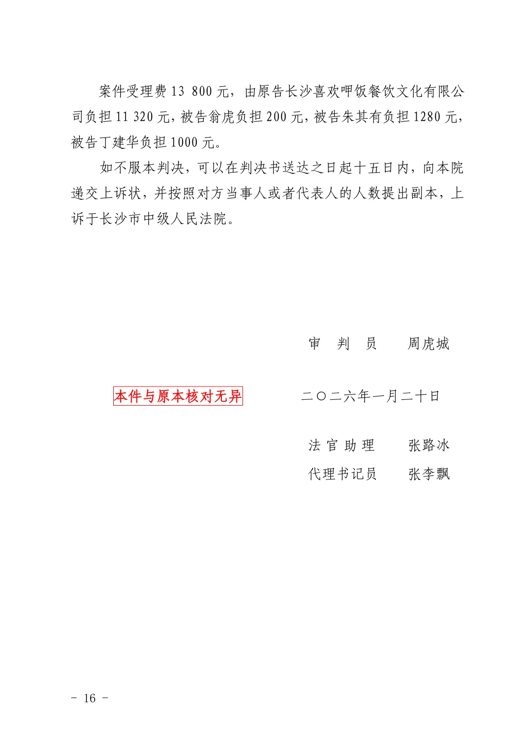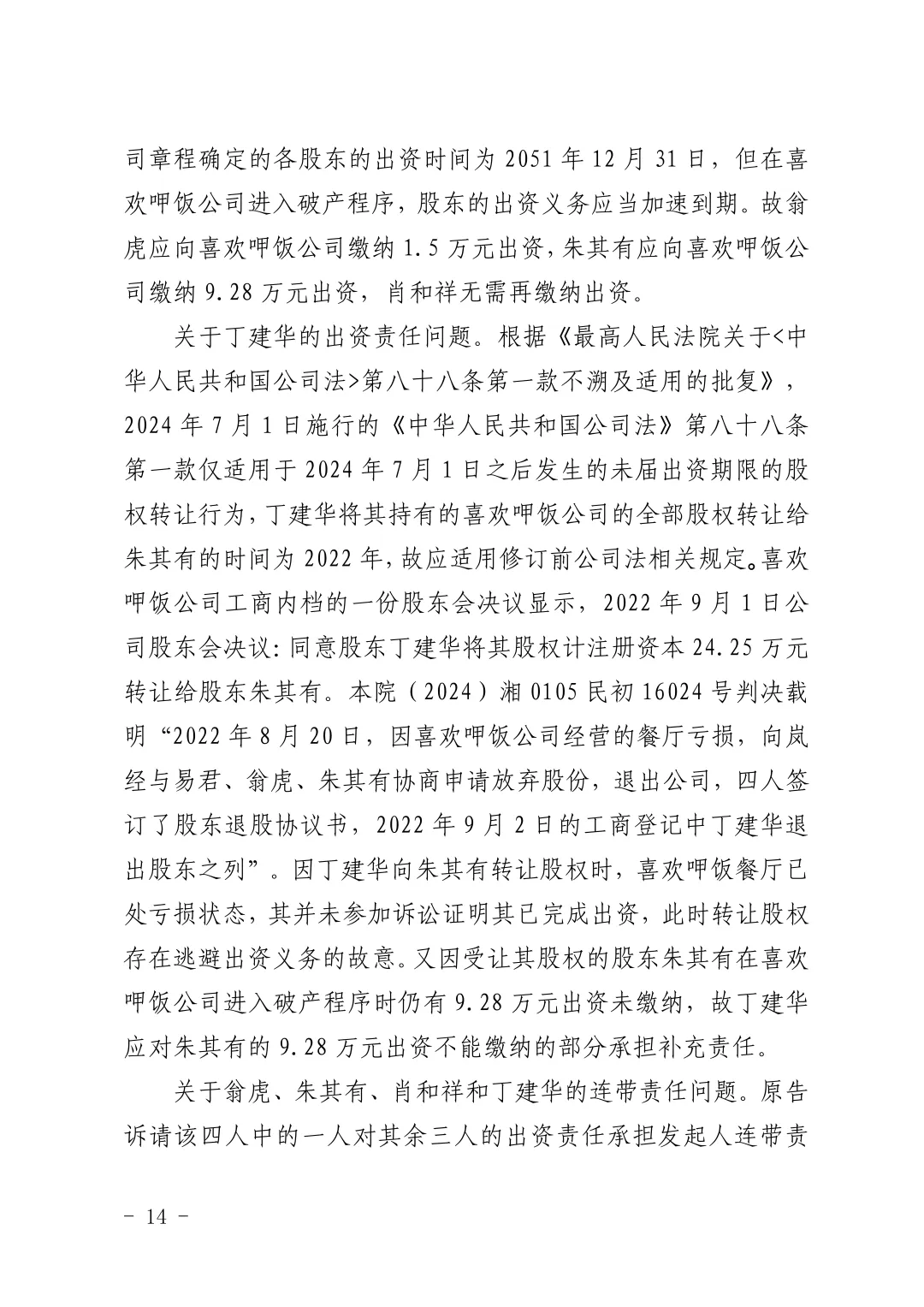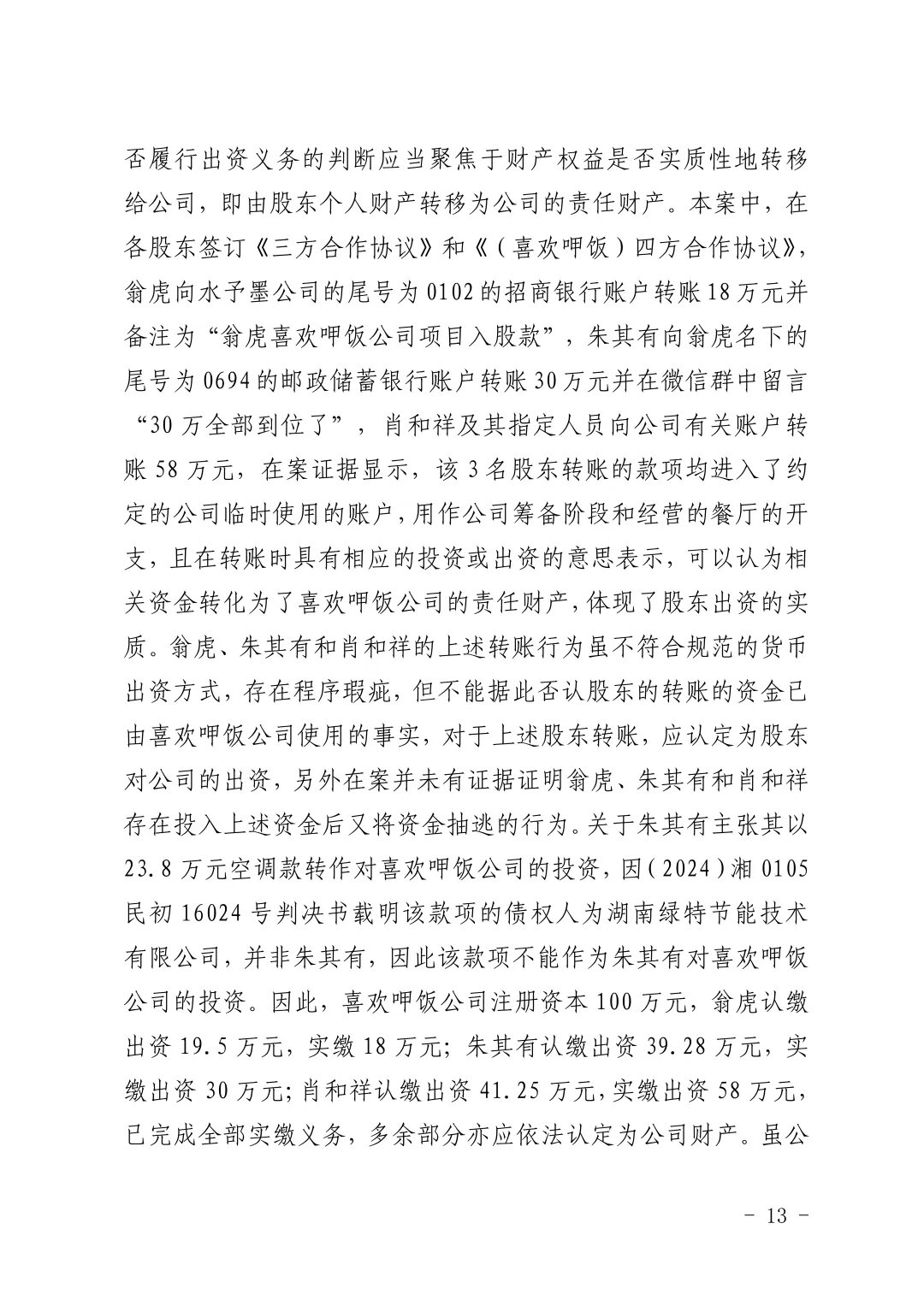 【喜欢呷饭】关于长沙喜欢呷饭餐饮文化有限公司诉翁虎等追缴股东出资纠纷一案判决结果的公示