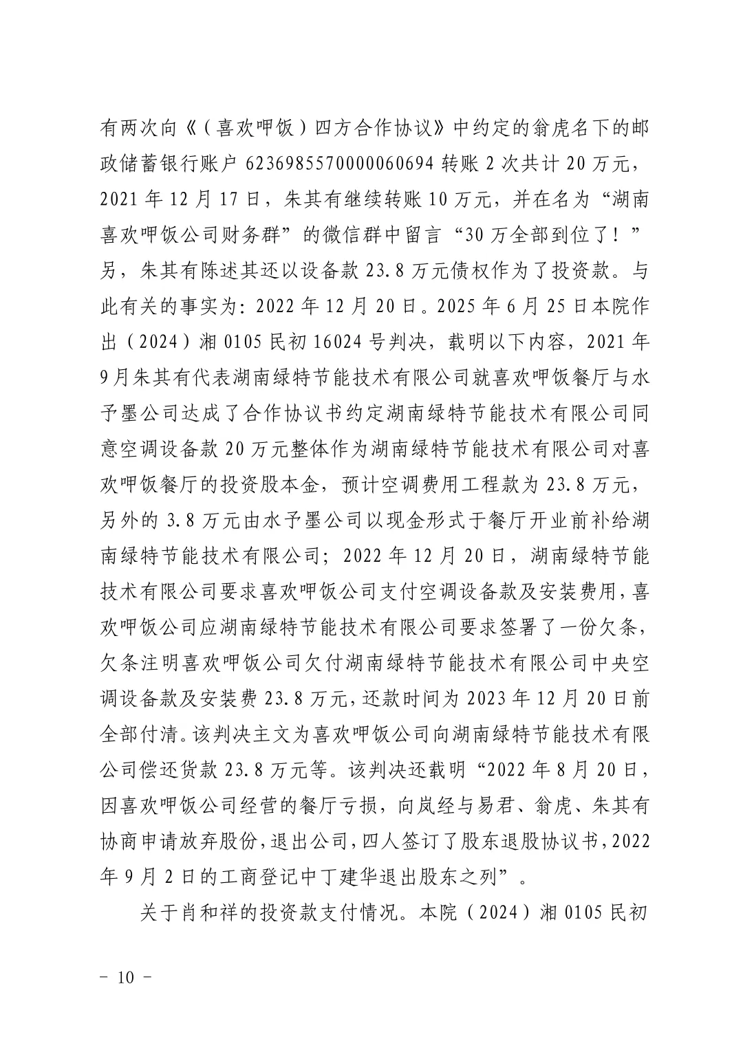 >【喜欢呷饭】关于长沙喜欢呷饭餐饮文化有限公司诉翁虎等追缴股东出资纠纷一案判决结果的公示