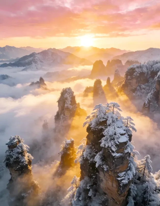 想看日出日落,天子山顶有客栈,条件一般,位置真香。