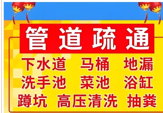 管道疏通:使用专业疏通设备,解决各类下水道、卫生间、地漏、浴缸、菜池、阴沟、马桶、蹲坑等堵塞问题。