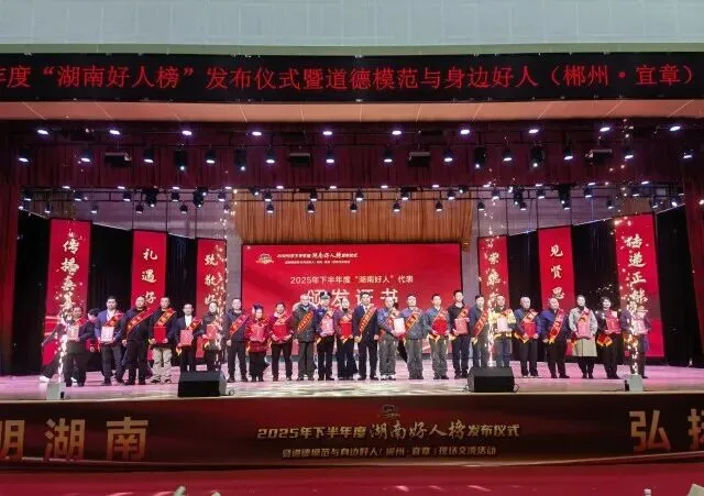 1月30日,2025年下半年度“湖南好人榜”发布仪式在宜章县举行。经严格评选,全省共有60人(组)群众身边好人光荣上榜。其中,我市7位市民以其感人的事迹和高尚的品德脱颖而出,荣登榜单,生动展现了张家界人民崇德向善的精神风貌。
