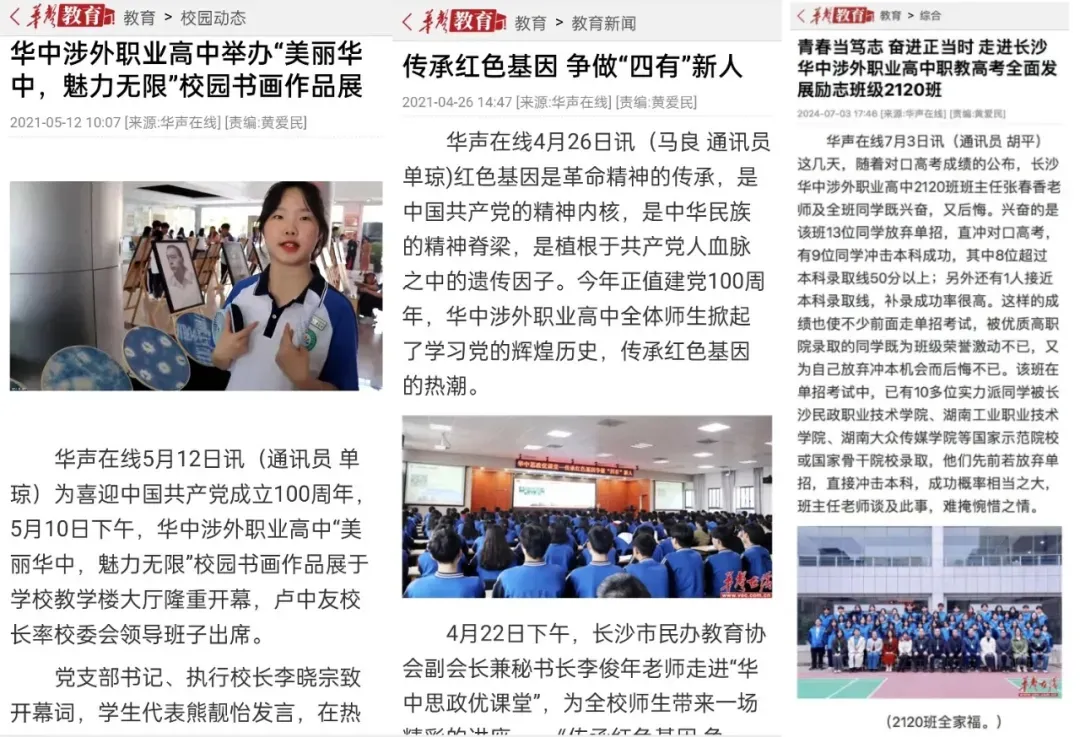 长沙华中涉外职业高中是经湖南省教育厅备案,长沙市教育局批准设立的一所全日制职业高中。学校创办于2005年,历经二十载春华秋实,硕果累累,文化底蕴积淀深厚。