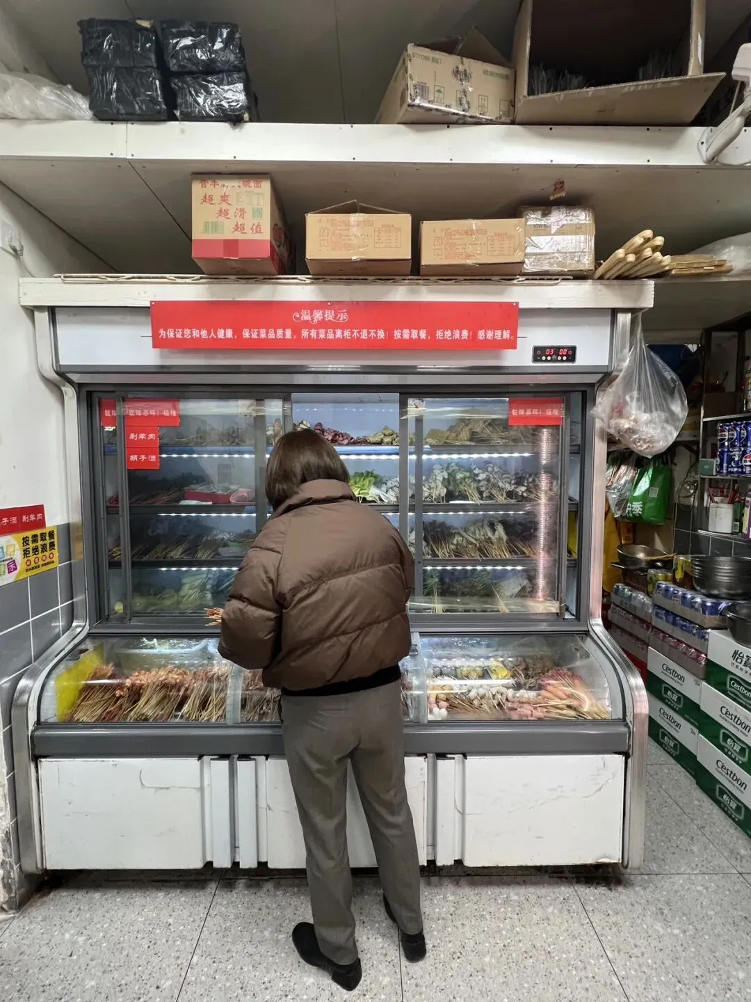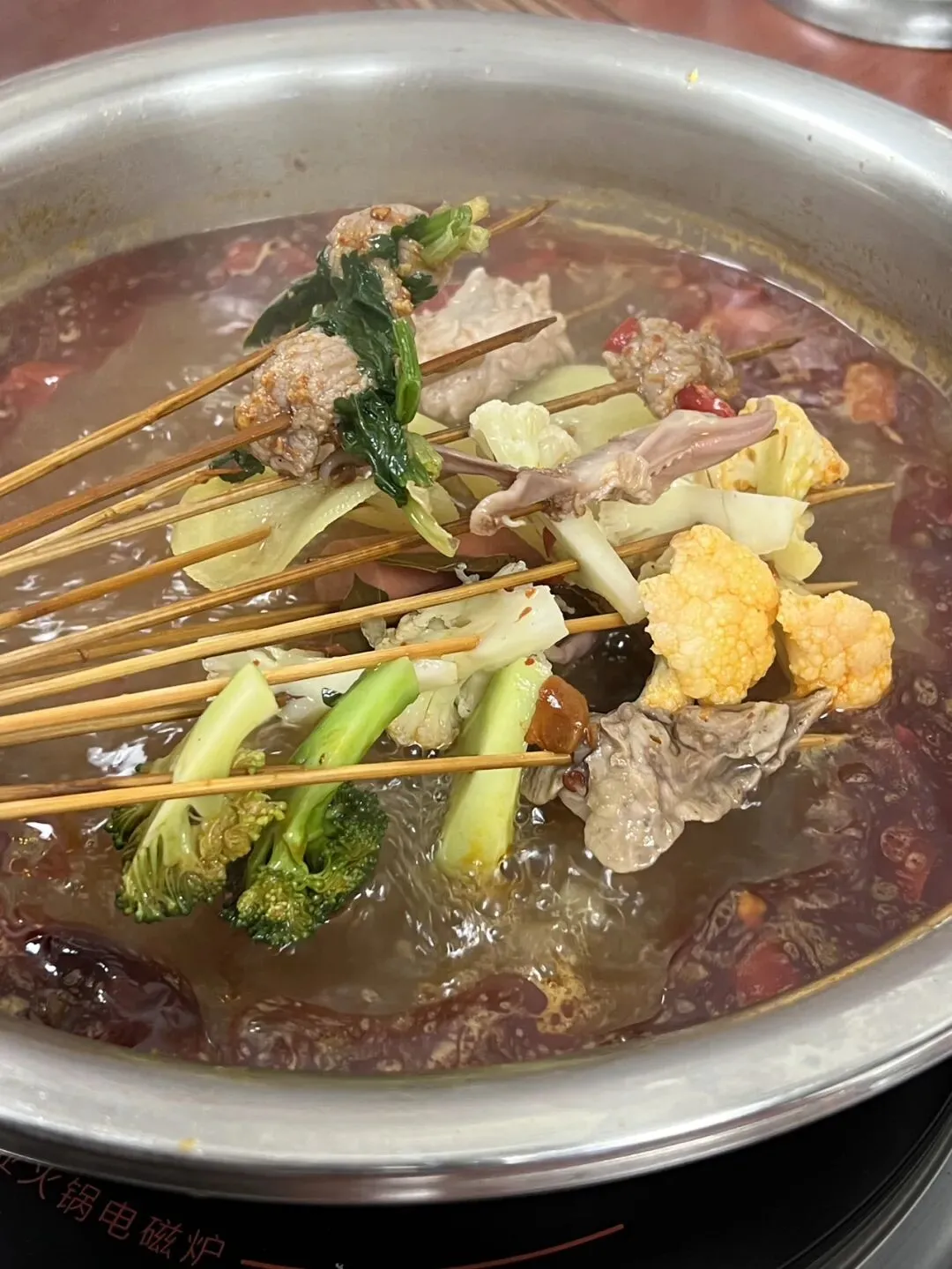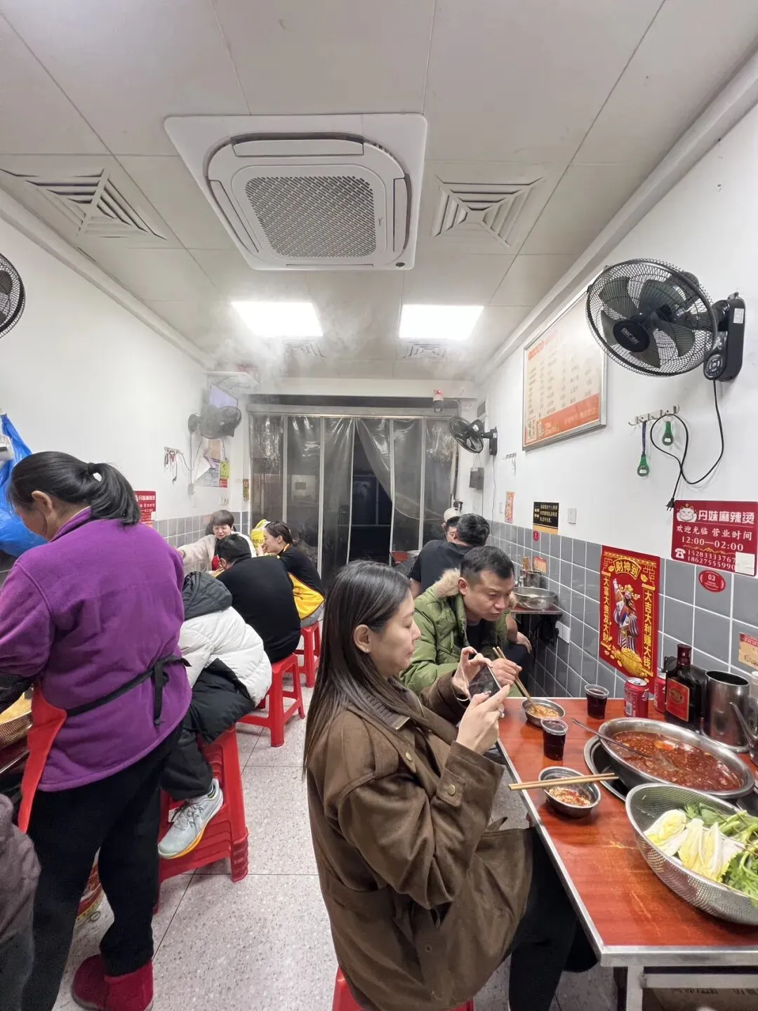 门店还是老位置,还是小小的门面几乎是没有变化。橱柜里看菜拿菜,选择蛮多的!先荤素拿点,吃完了再来第二轮三轮!店里好拥挤,饭点来的基本坐满了,满满当当有点活动不开。选的全辣锅底,辣度没有很高,小朋友都能接受的微辣程度,不会过于油腻,放心点!