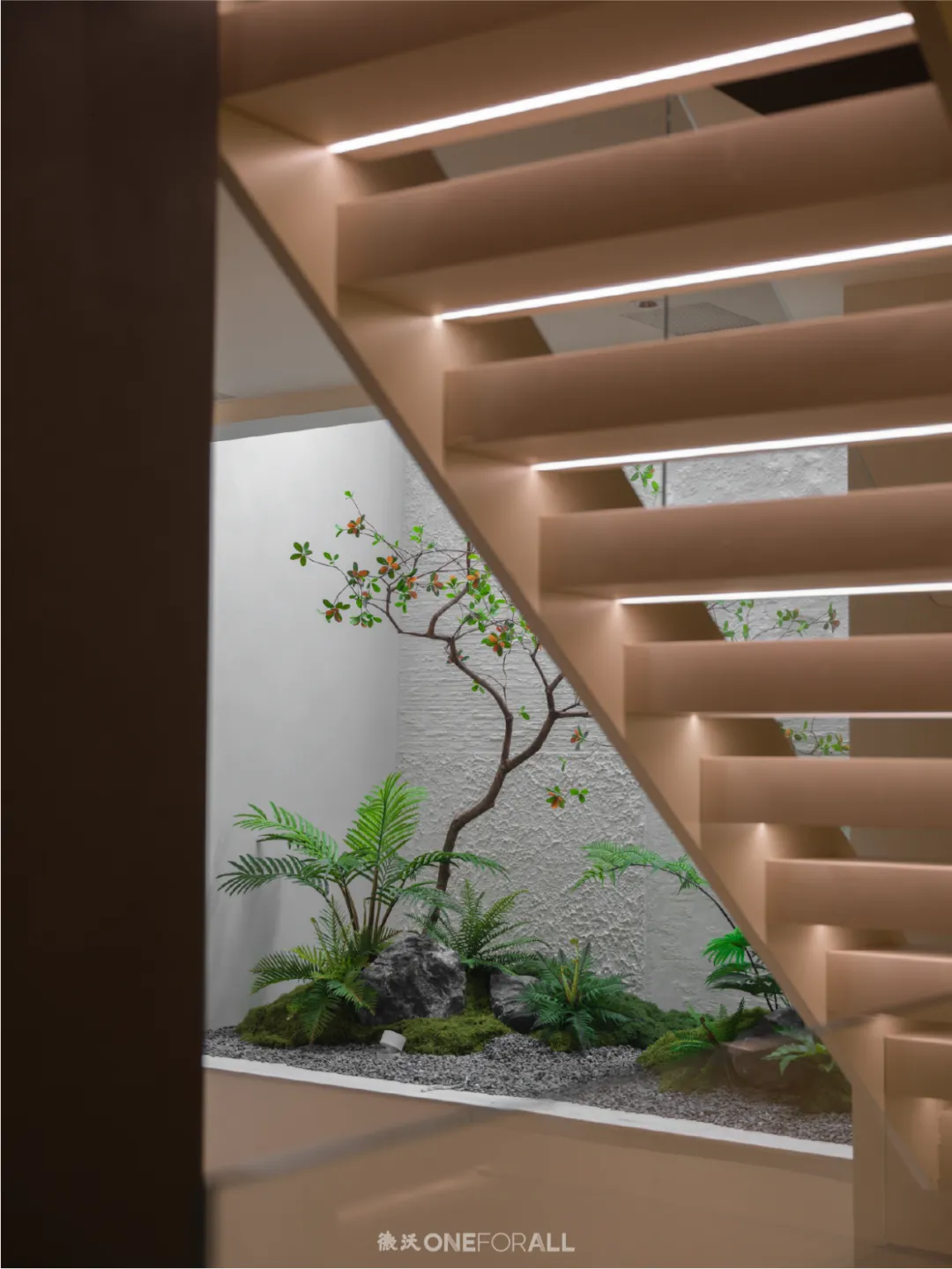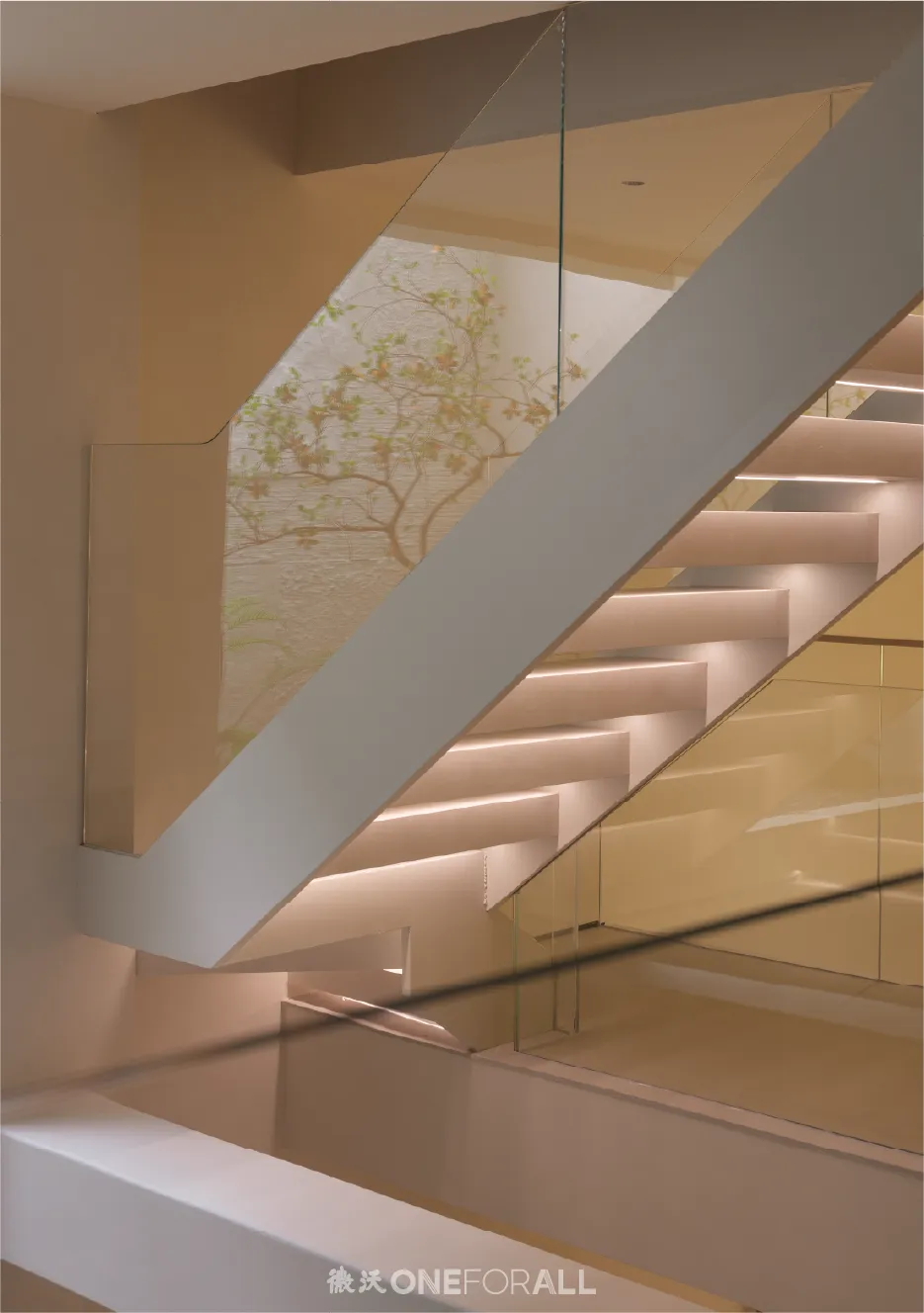 折叠的楼梯像也叶脉一样延伸至建筑的深处——