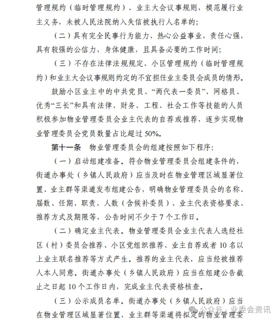 但若通过行政力量主导业主组织架构,甚至设定“党员占比超50%”等硬性指标,可能与《民法典》第277条“业主可设立业主大会,选举业委会”的业主自治原则相冲突。再好的治理目标,也不能以牺牲法定权利为代价。