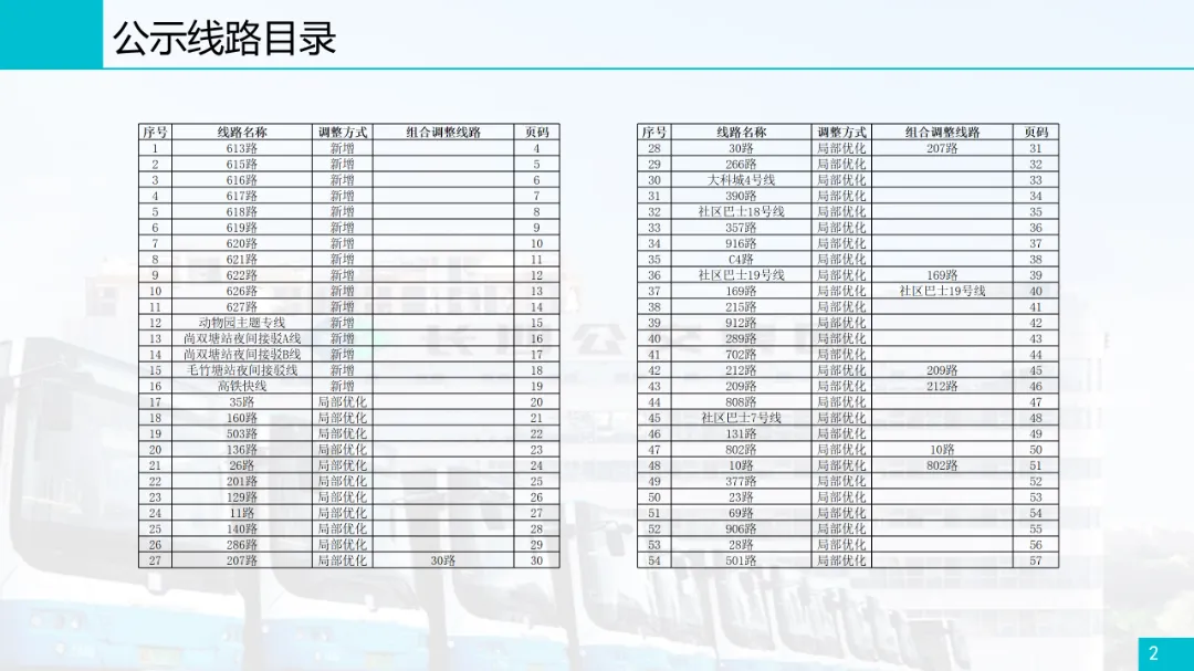 拟对原优化方案中23条线路进行调整,其中新增优化13条,调整优化4条,撤销优化6条。