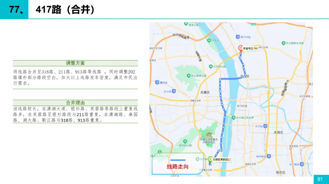 1月30日,长沙交通运输局发布《长沙城区公交线网优化方案(征求意见稿)》第三轮公示。