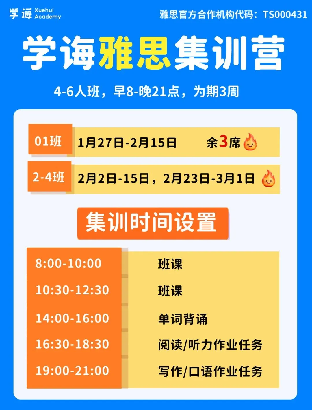 ⚠️雅思集训01班,将于1月27日至2月15日开班,目前仅余3席!