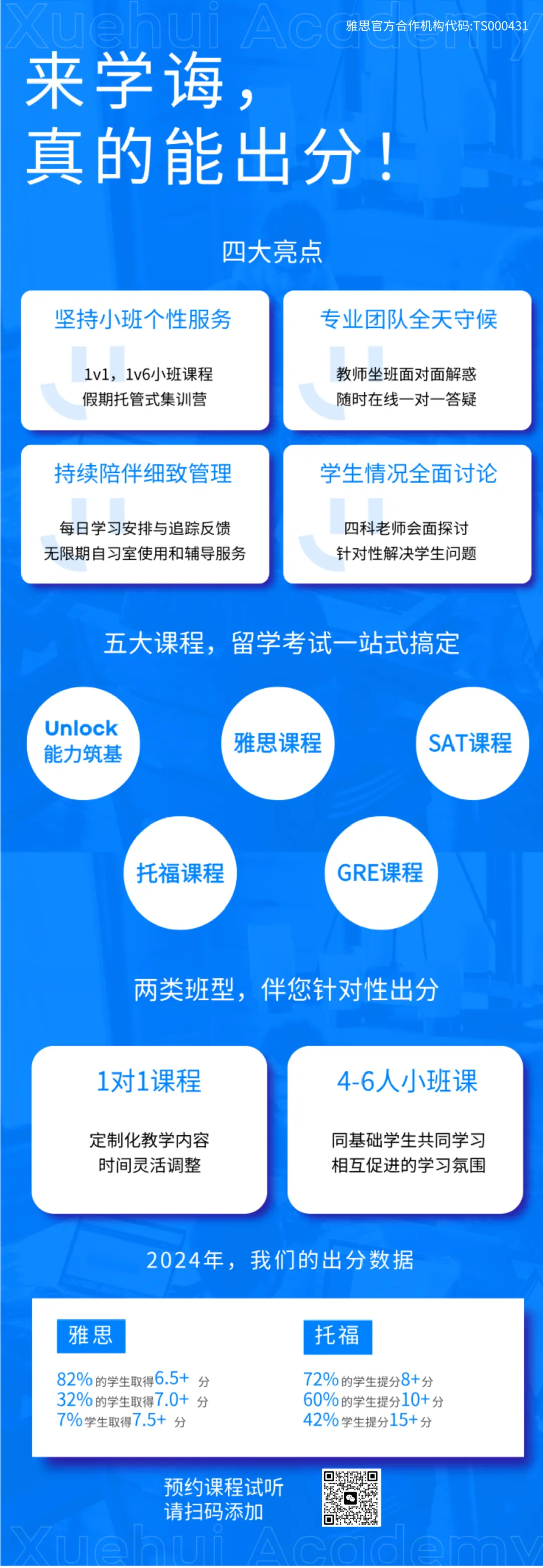关注学诲,带你解锁更多雅思、托福干货 & 高分故事