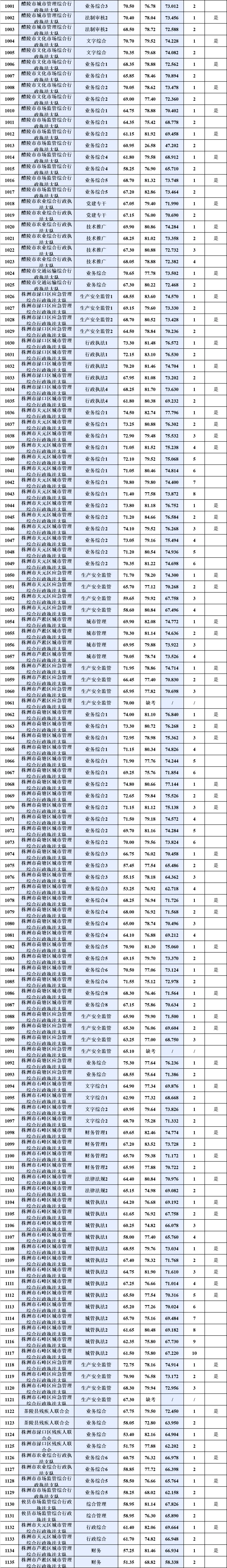 2025湖南省考株洲考区总成绩排名