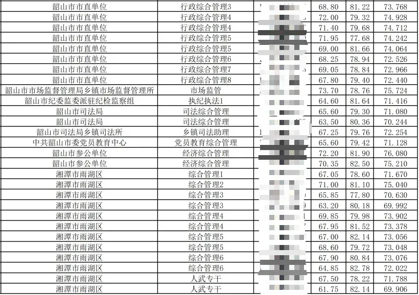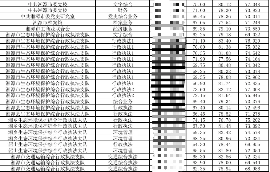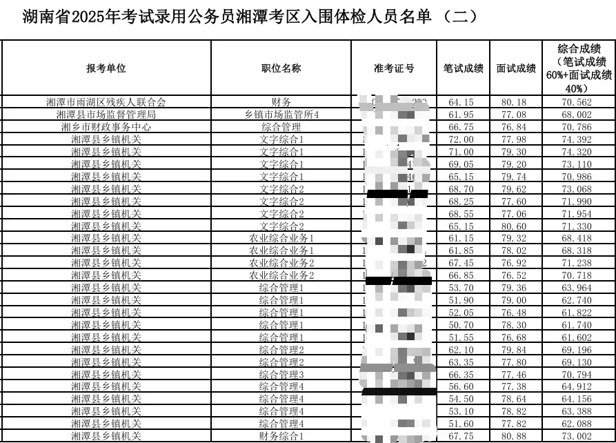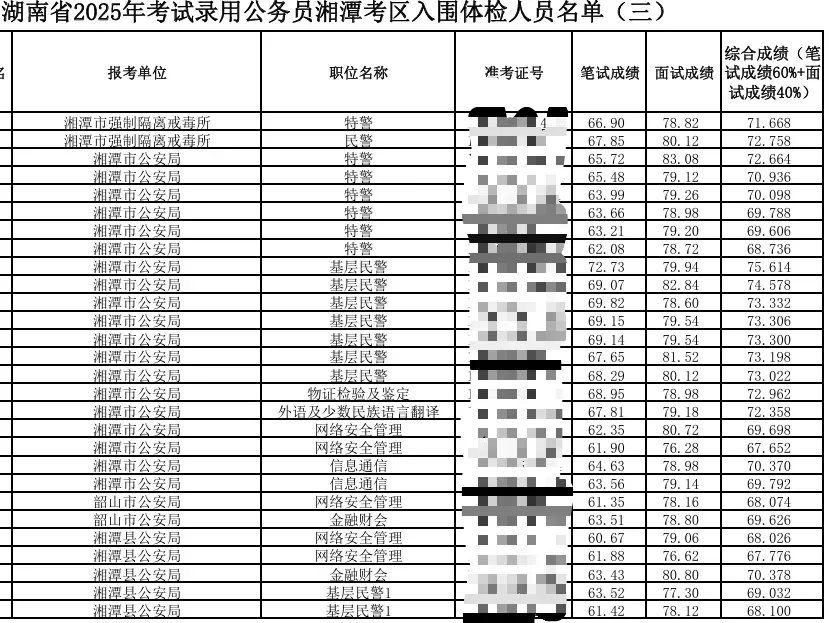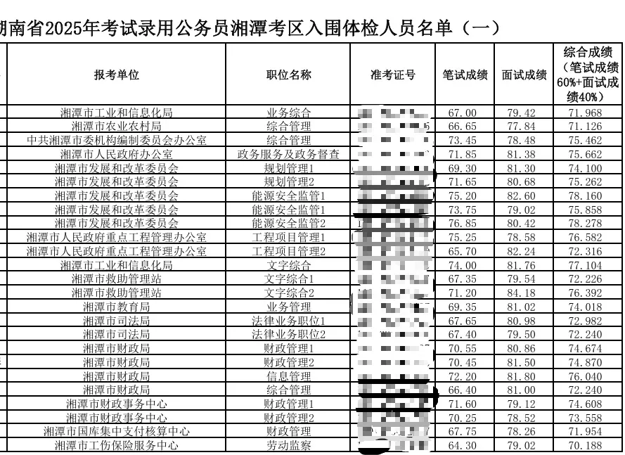 2025湖南省考湘潭考区总成绩排名
