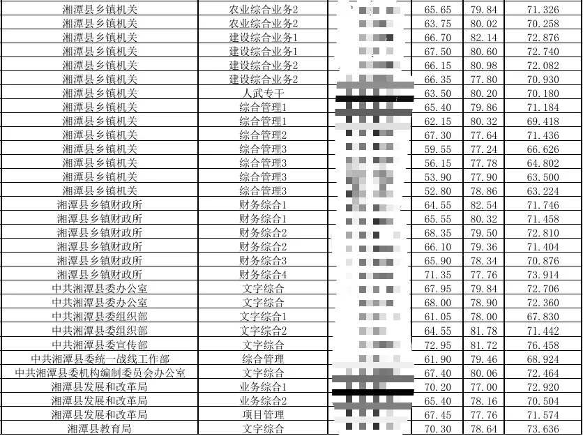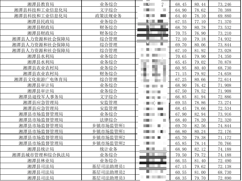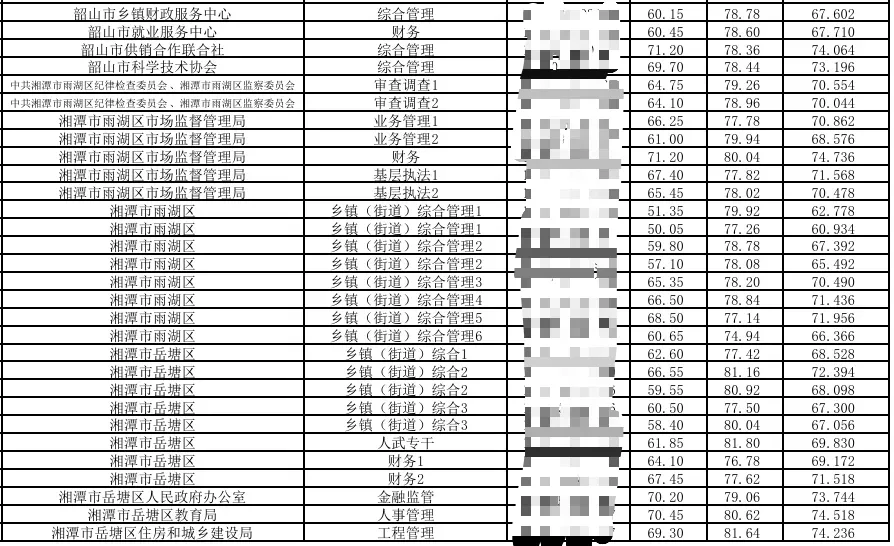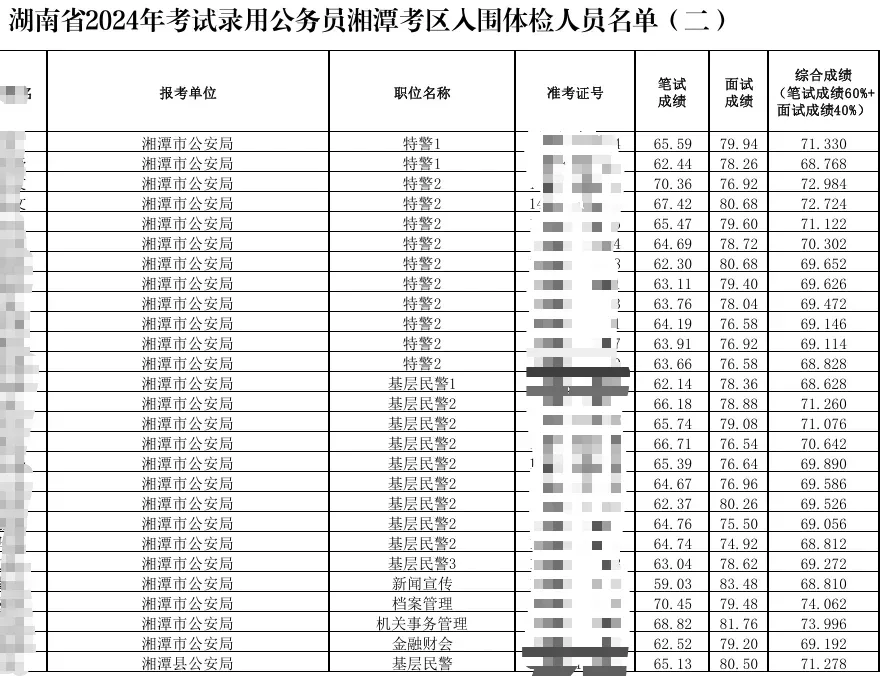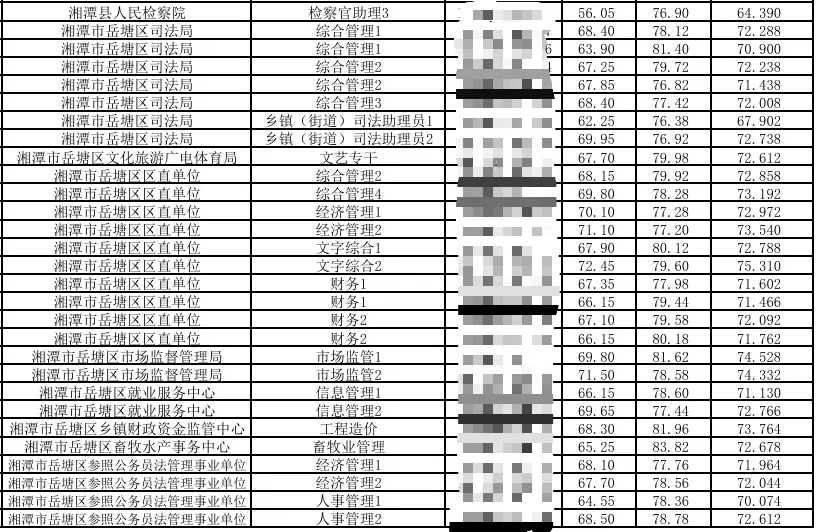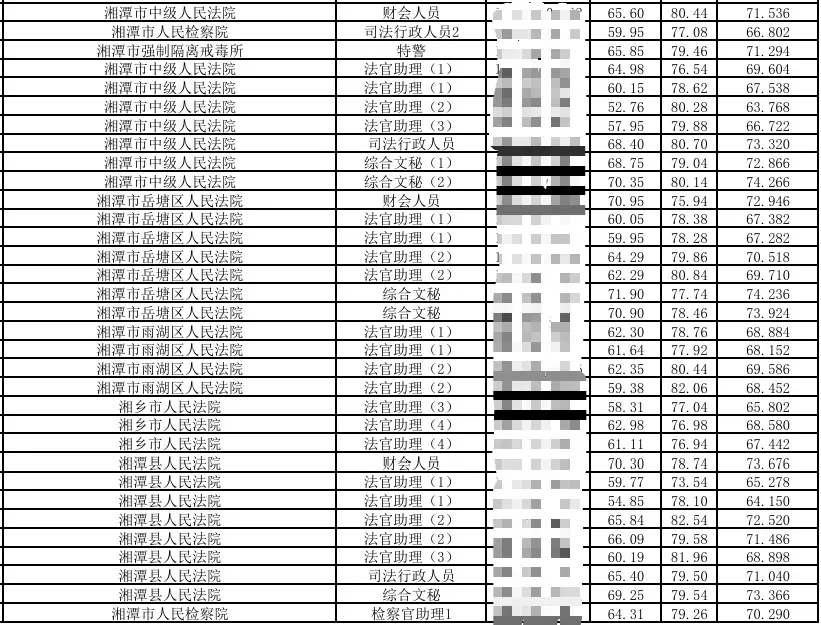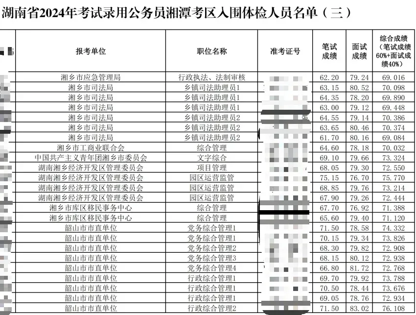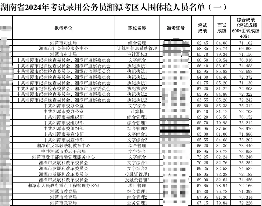 2024湖南省考湘潭考区总成绩排名